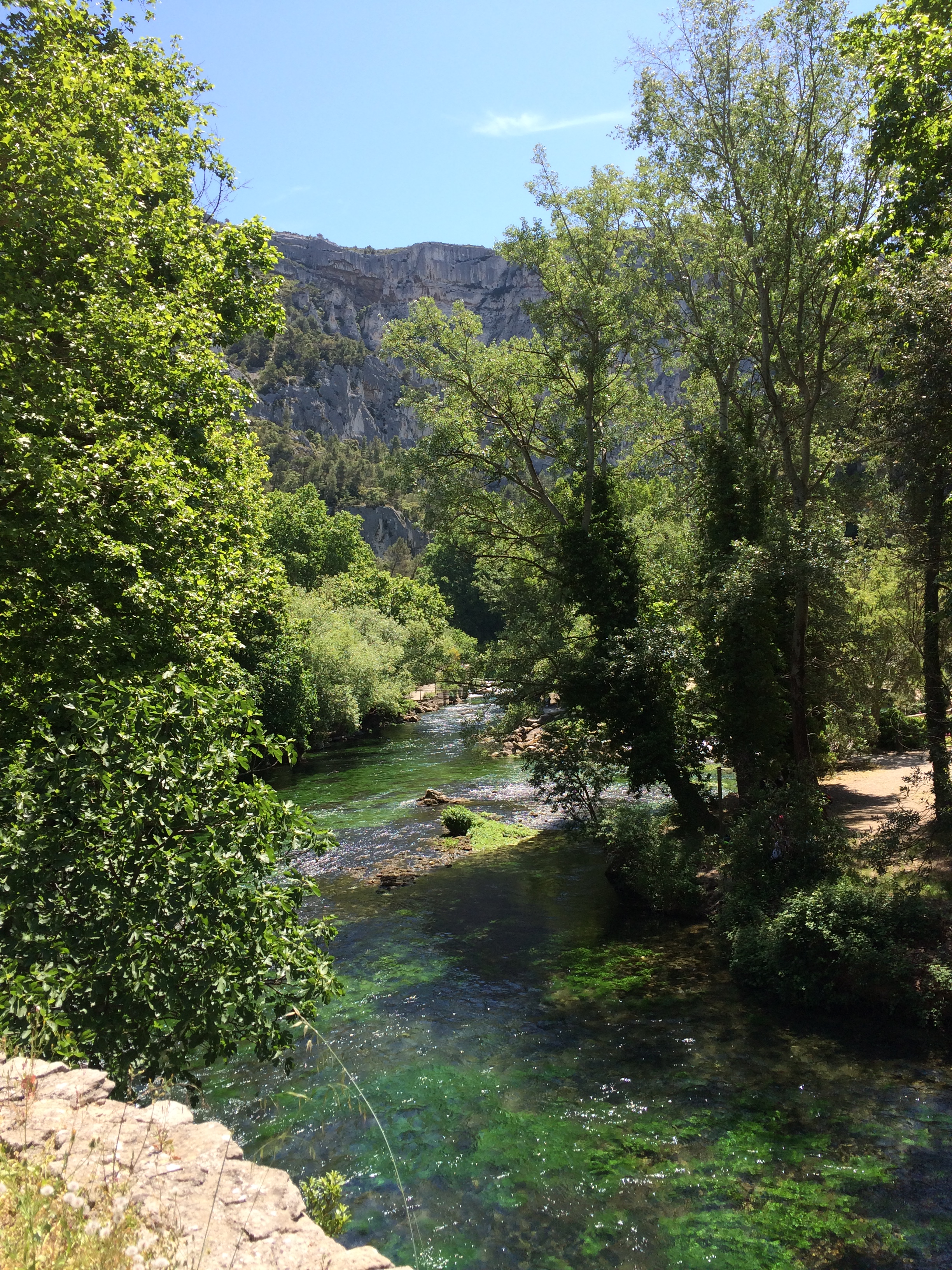 After leaving the market I cycled through the lanes again to Fontaine de Vaucluse, to sit by the river for lunch (olives, tomatoes & fougasse bought from the market) and to take a walk up to the source, which has dropped considerably since I last visited.