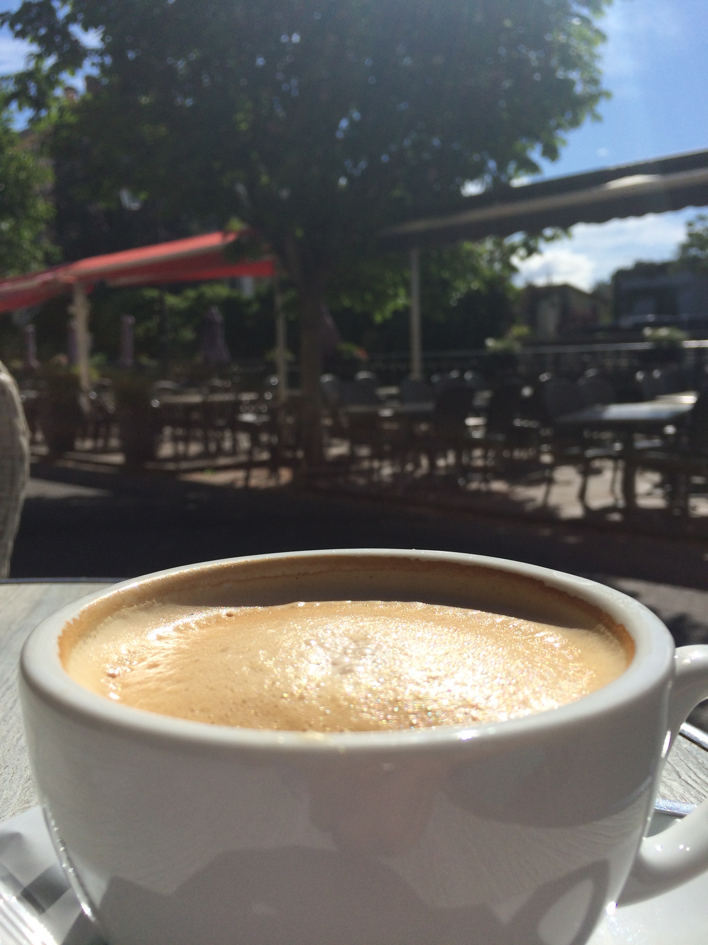 Arriving at the market I felt (and probably looked) rather windswept, so found a table in the sun, but happily out of the wind at the Café de La Sorgue, where I was able to catch my breath over a coffee and enjoy the view across the river.