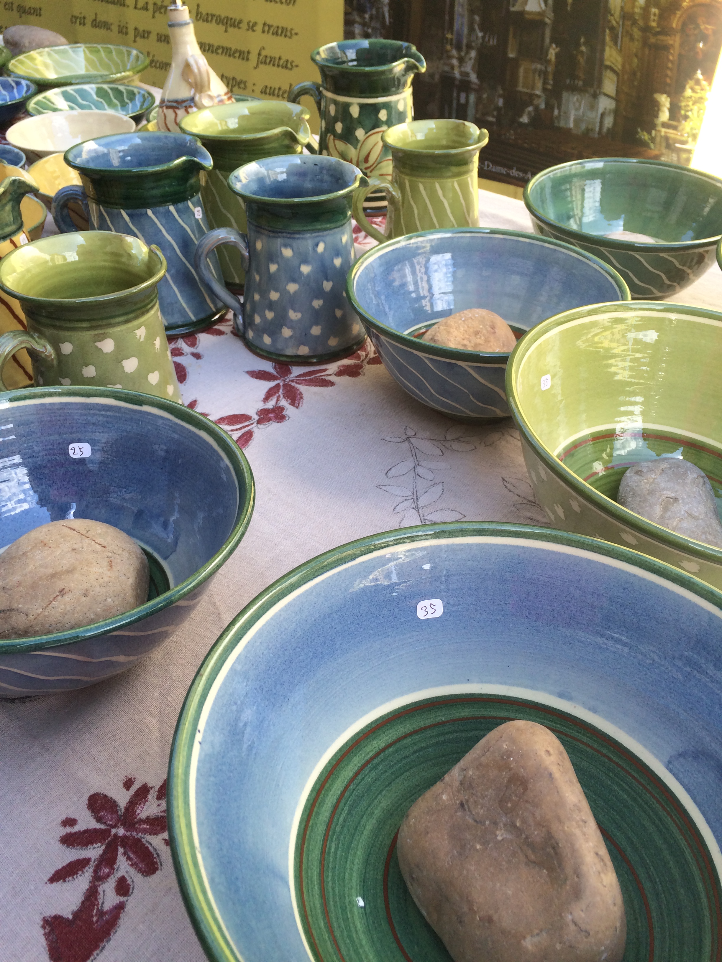 I was also rather taken with this pottery on a market stall in the main square, not something I had seen before and a bit different from the vivid colours I normally see.