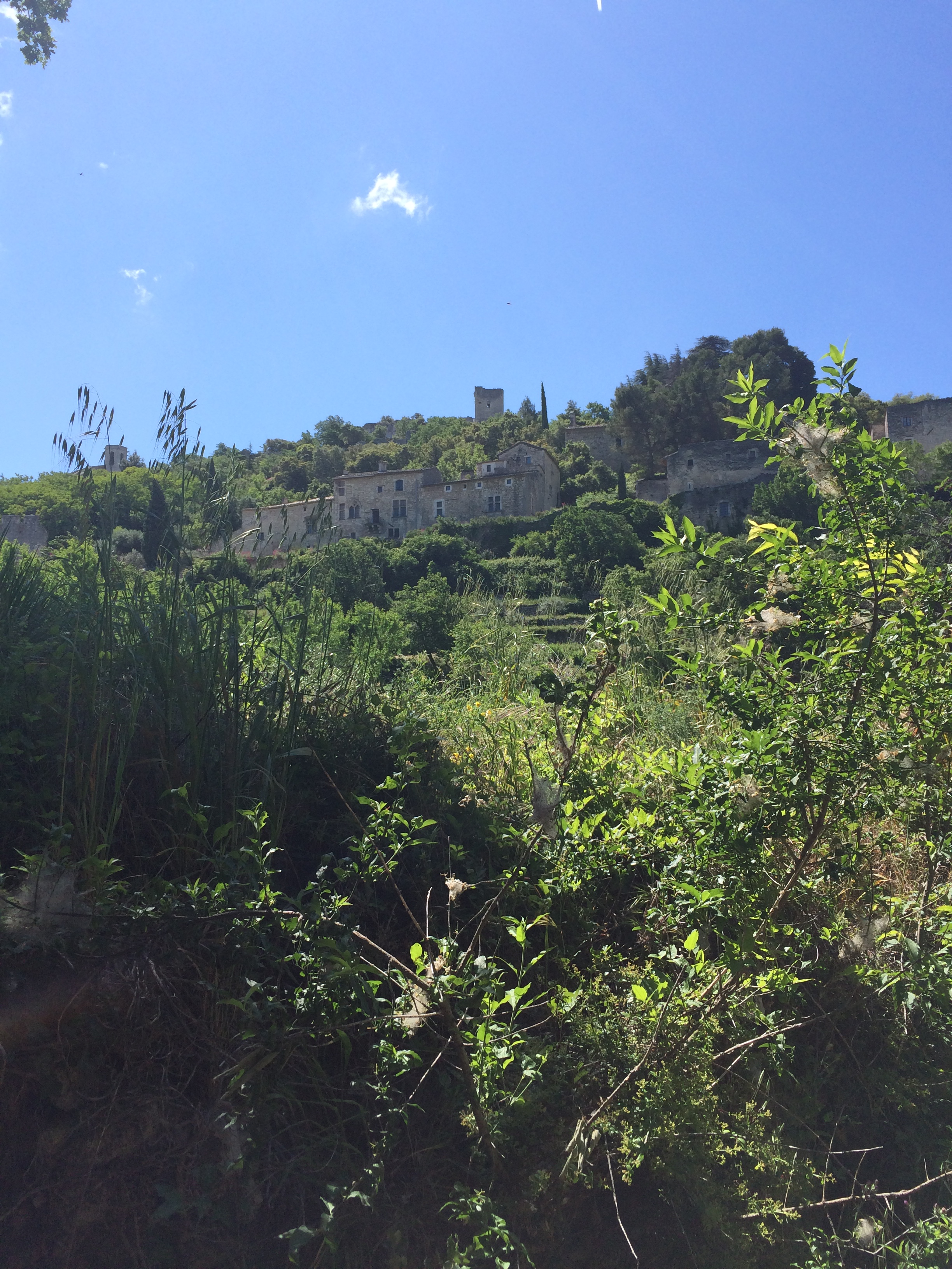 Eventually we came into a clearing and saw the ruined castle of Oppede Le Vieux rising dramatically out of the rocks above us and realised we had been on the right path all along. When you see the castle from this angle it is easy to see why it was built there and what a fortress it must have been as it appears to be balanced right on the edge of vertical cliffs