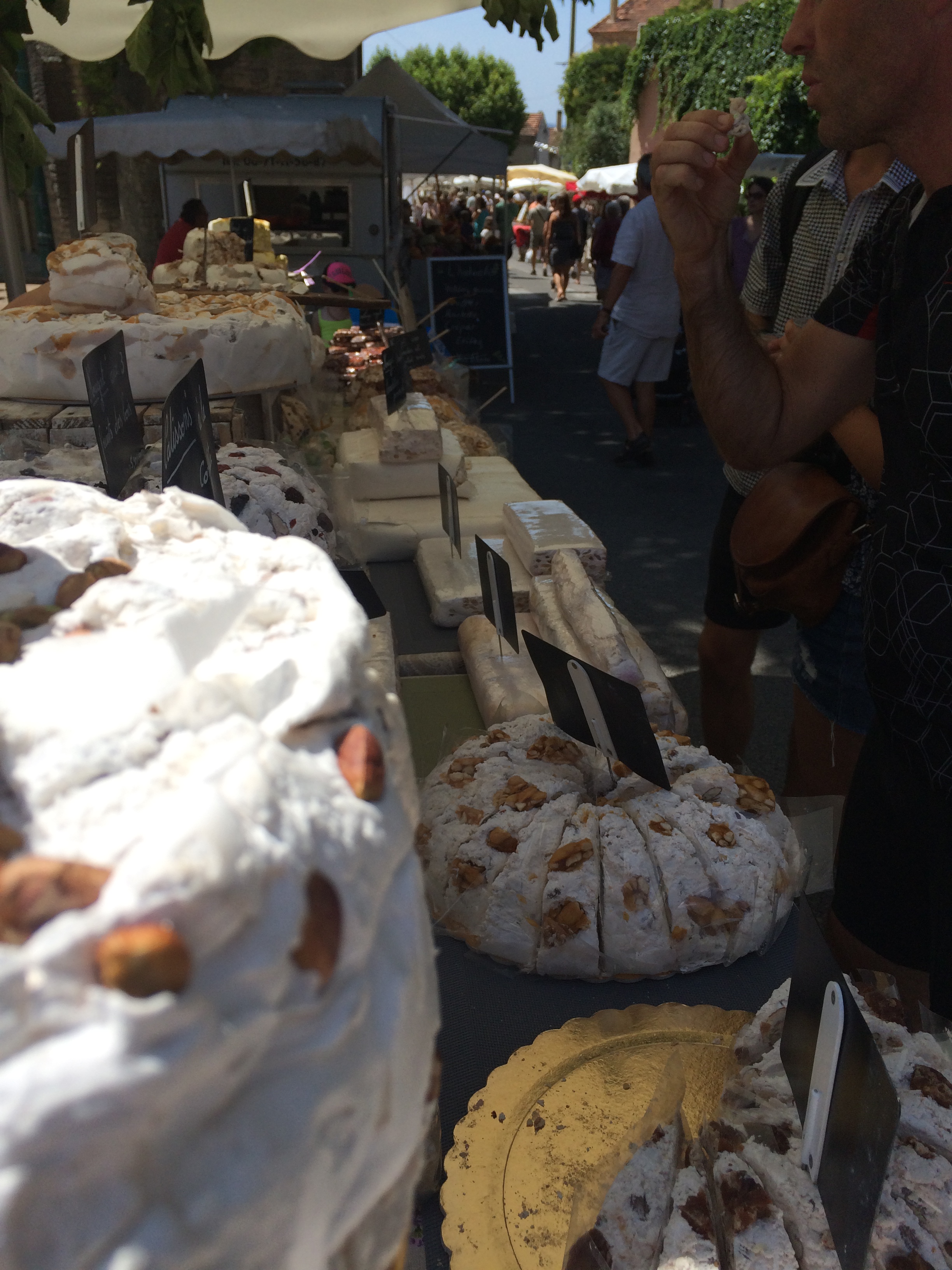 A bowl of ‘Tapenade de la Figue’ sat amongst the olives on one of the stalls‘fig bread’, ‘fig jam,’ ‘nougat with fig’