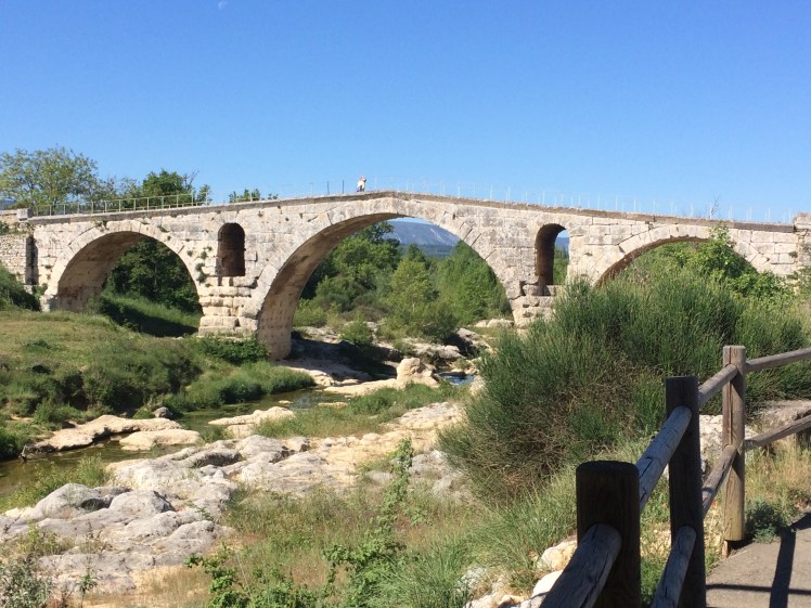 A new bridge has now been built to take cars & other traffic and the original Pont St Julien now forms part of the cycle trail, taking bikes across the river and on towards Coustellet.