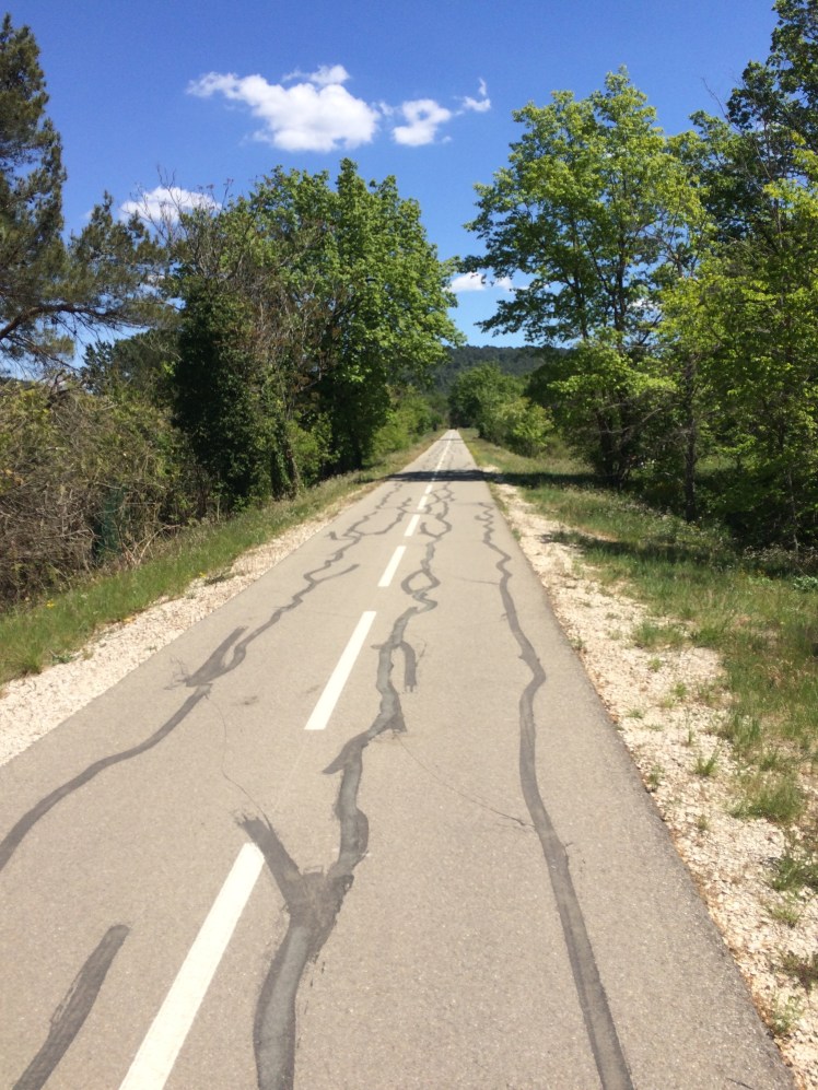 Just before Saint Saturnin I turned right & dropped back onto the road back towards Apt, where I rejoined the Veloroute du Calavon & headed home, arriving in plenty of time to go scavenging at the local recycling centre.