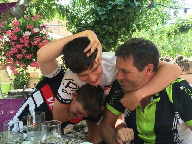 Reality is more that the boys will have their bums on their saddles for over 1500km and will be carrying their camping equipment with them. They will be packing enough chamois cream to keep a professional cycling team going & will be living on bread & cheese in the evenings as they will probably be too tired to do much else, particularly if the camp-site is some distance from a restaurant.