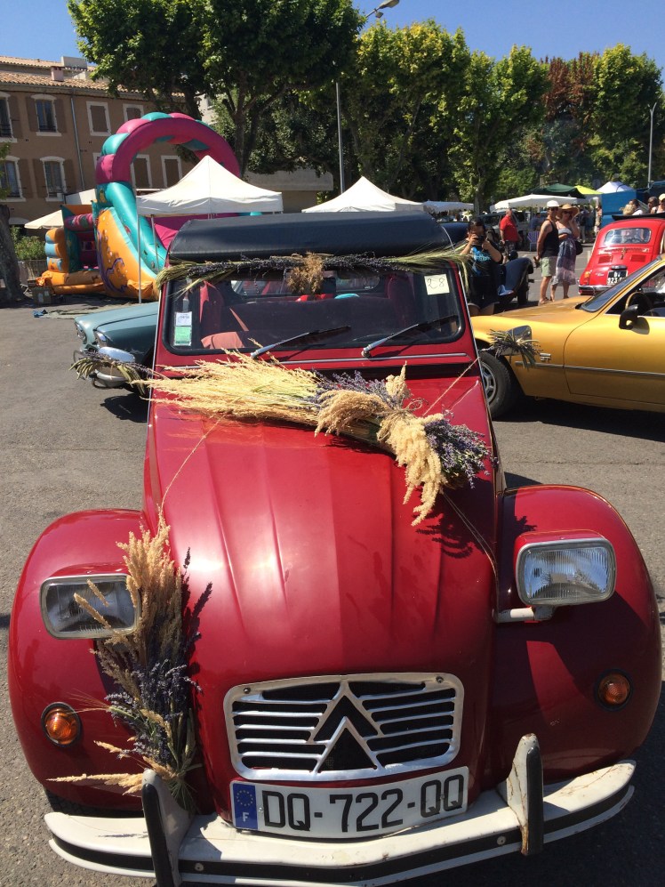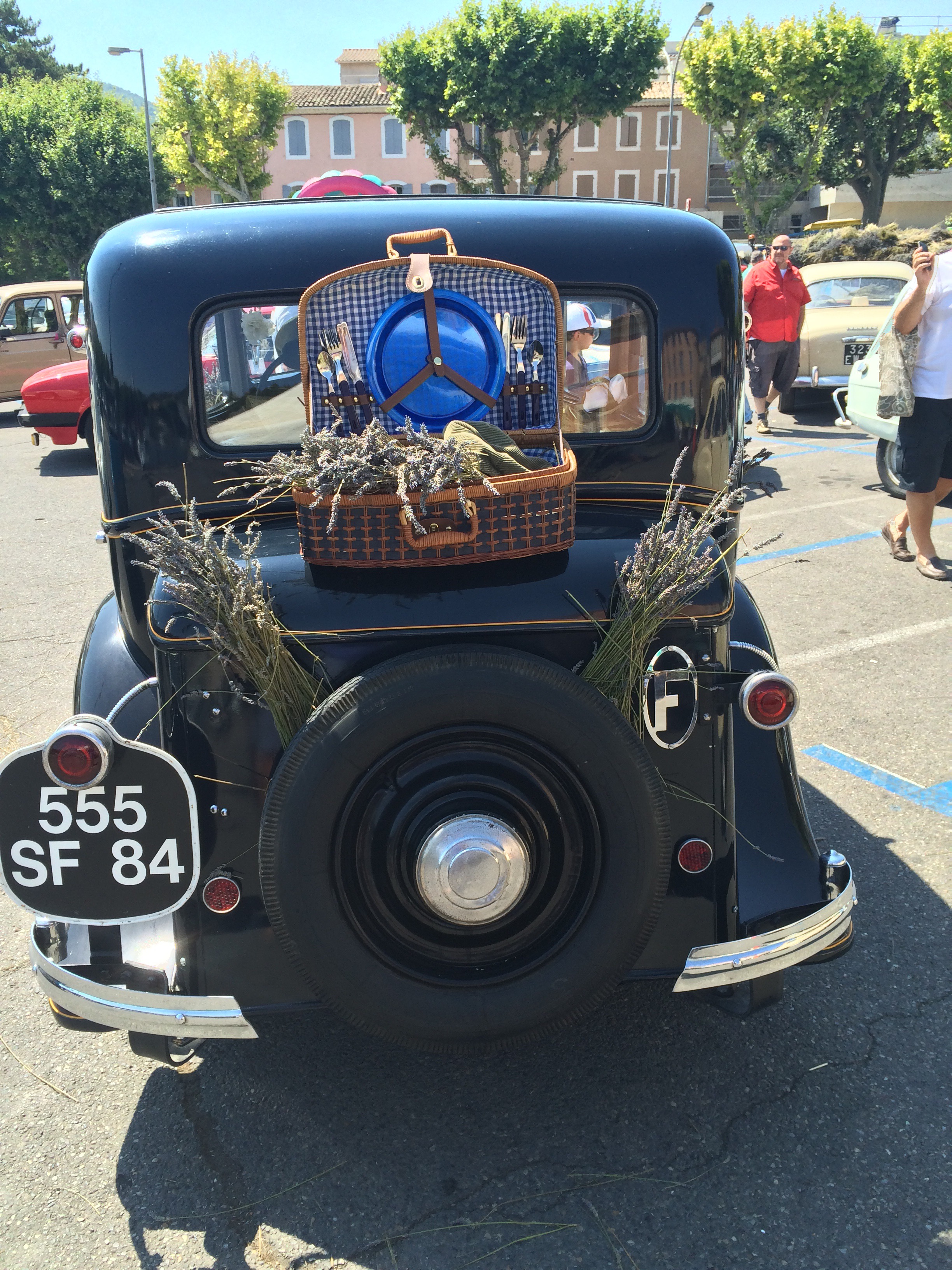 Walking in from the Cereste side of the town the first thing I came across was the main car park, filled with stalls & vintage cars, all decorated beautifully with bouquets of lavender