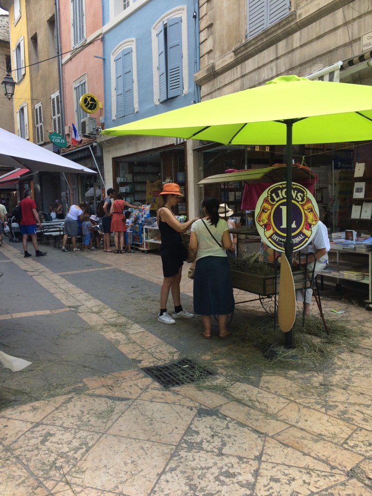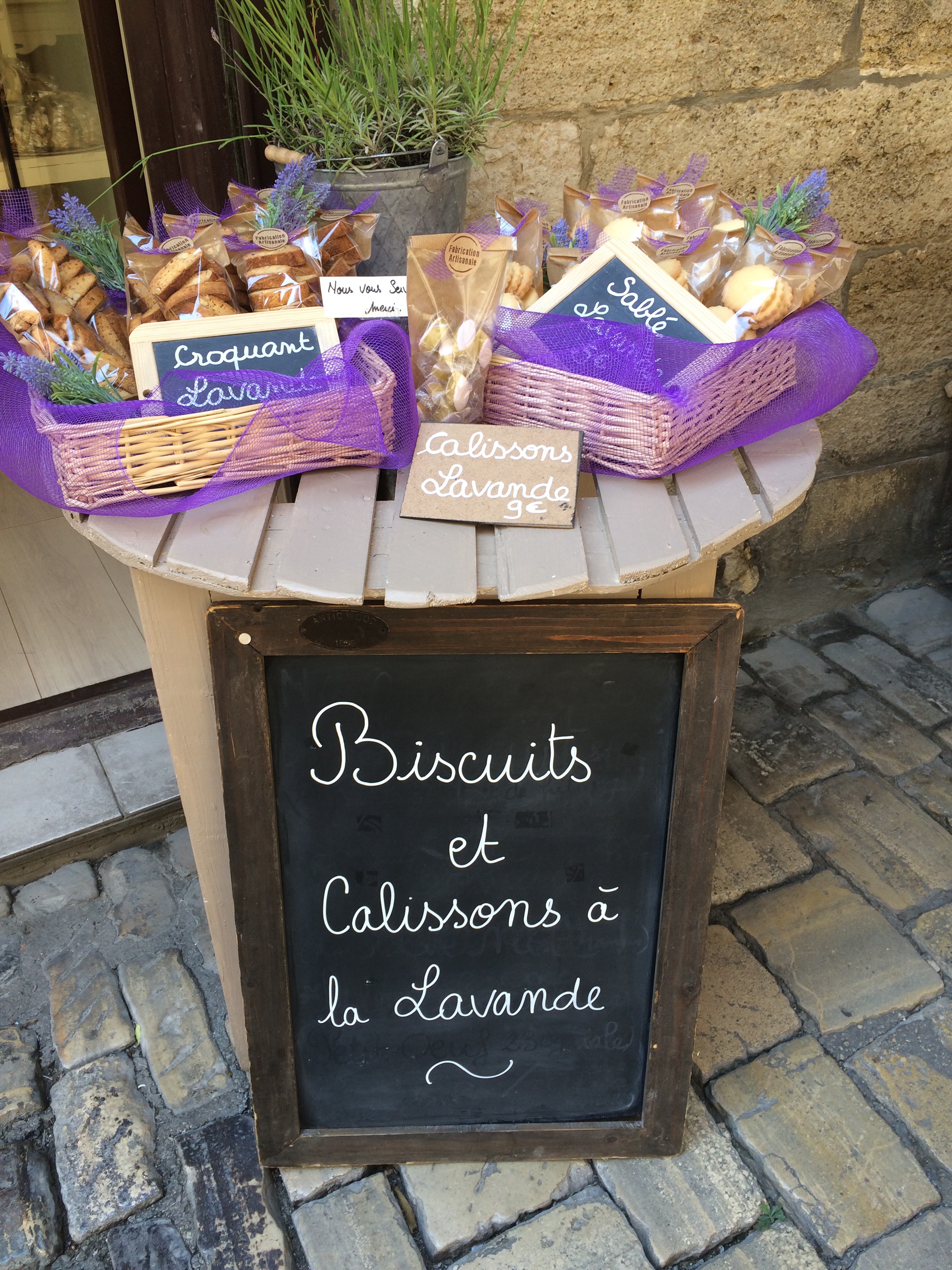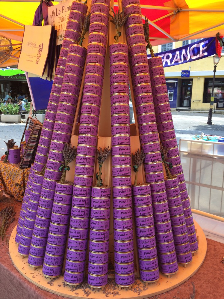 The Main Street through the town was busy with people & a lot of the shops had moved their wares outside, focusing on anything they had for sale with lavender either in it or on it – I particularly liked the sound of the lavender Calissons