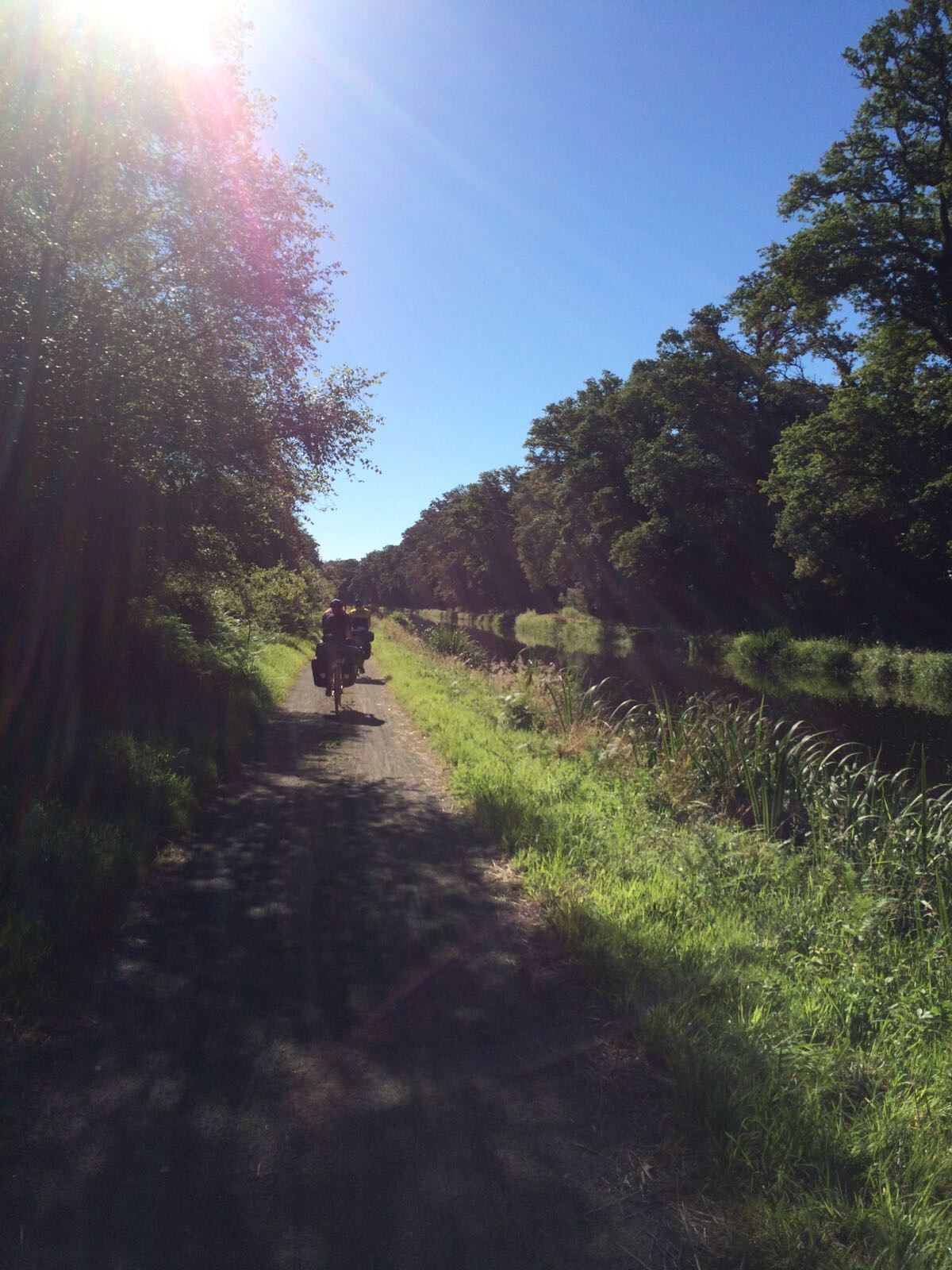 Today started with more blue skies & after packing the tent up & reloading the bikes the boys headed back onto the trail along the Canal.