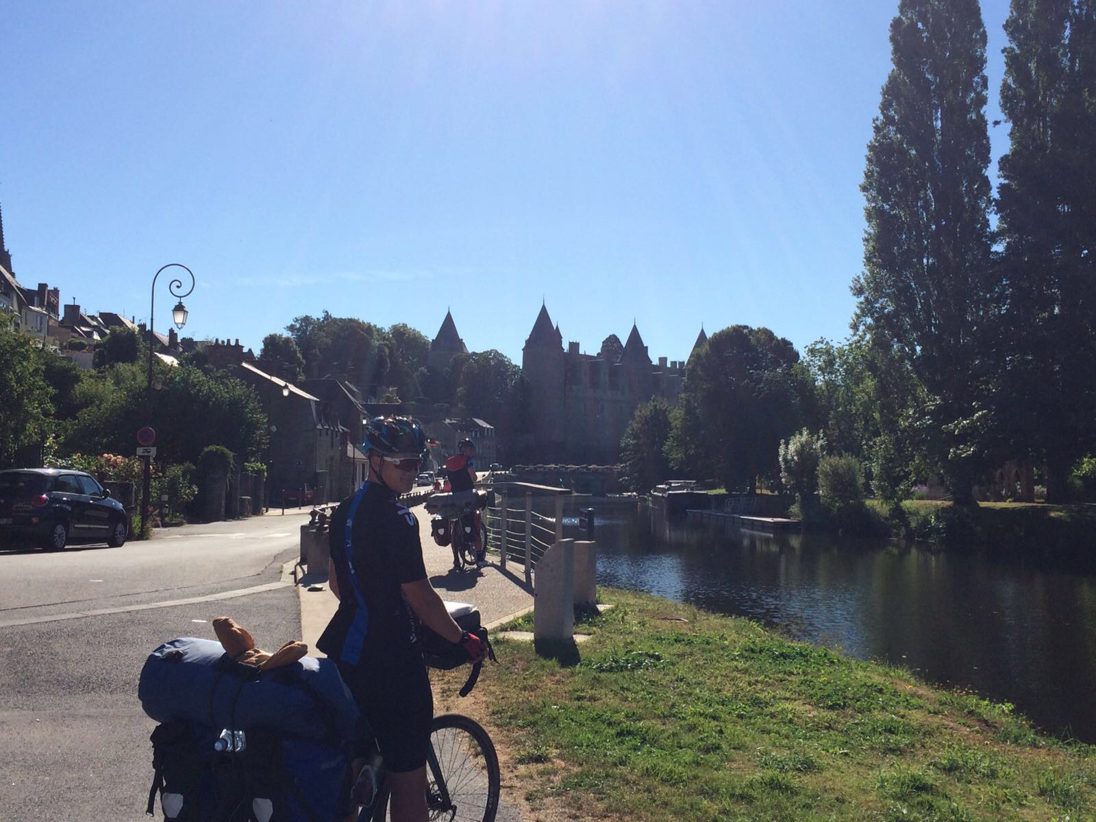 Because they are on the canal path, they don’t always pass through villages and towns, and have found that can’t be certain of finding cafés or restaurants to eat in at lunchtime, so have made sure that they’ve stocked up with food before they set off each morning. Carrying the extra food has needed some thought & again Tom has been practising with a variety of methods – although I’m not sure today’s gave the best results, as they ended up with a very flat and squashed baguette. Although it still tasted the same & I think at lunchtime they were almost too hungry to notice!