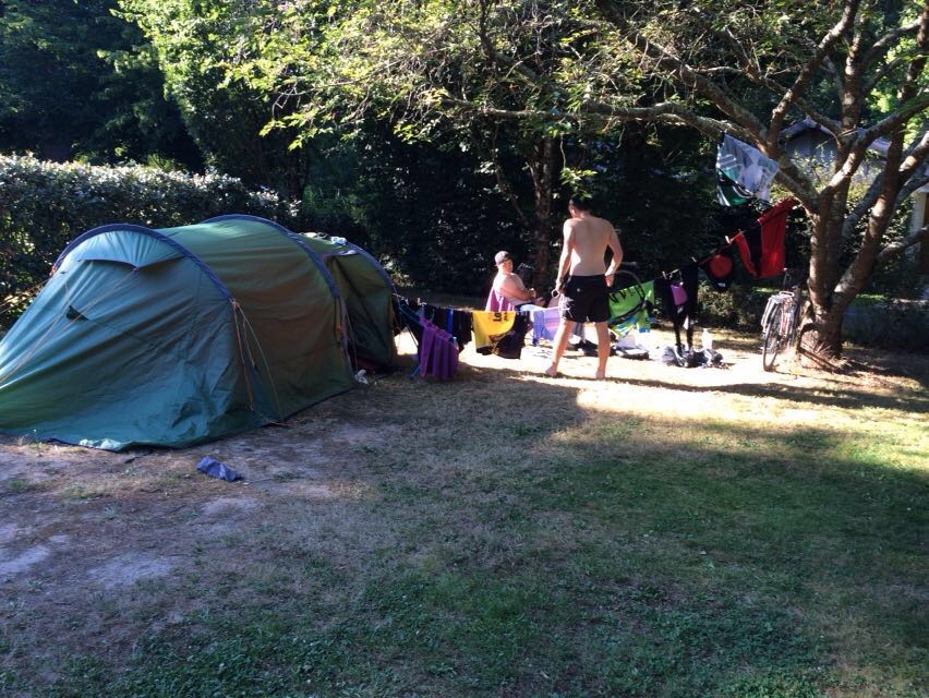 So after 69.2 miles today they have pitched up at the Camping St Clair in Guenrouët 22€ for the night and have managed to string up a rudimentary washing line to dry their kit, which certainly needed a wash!