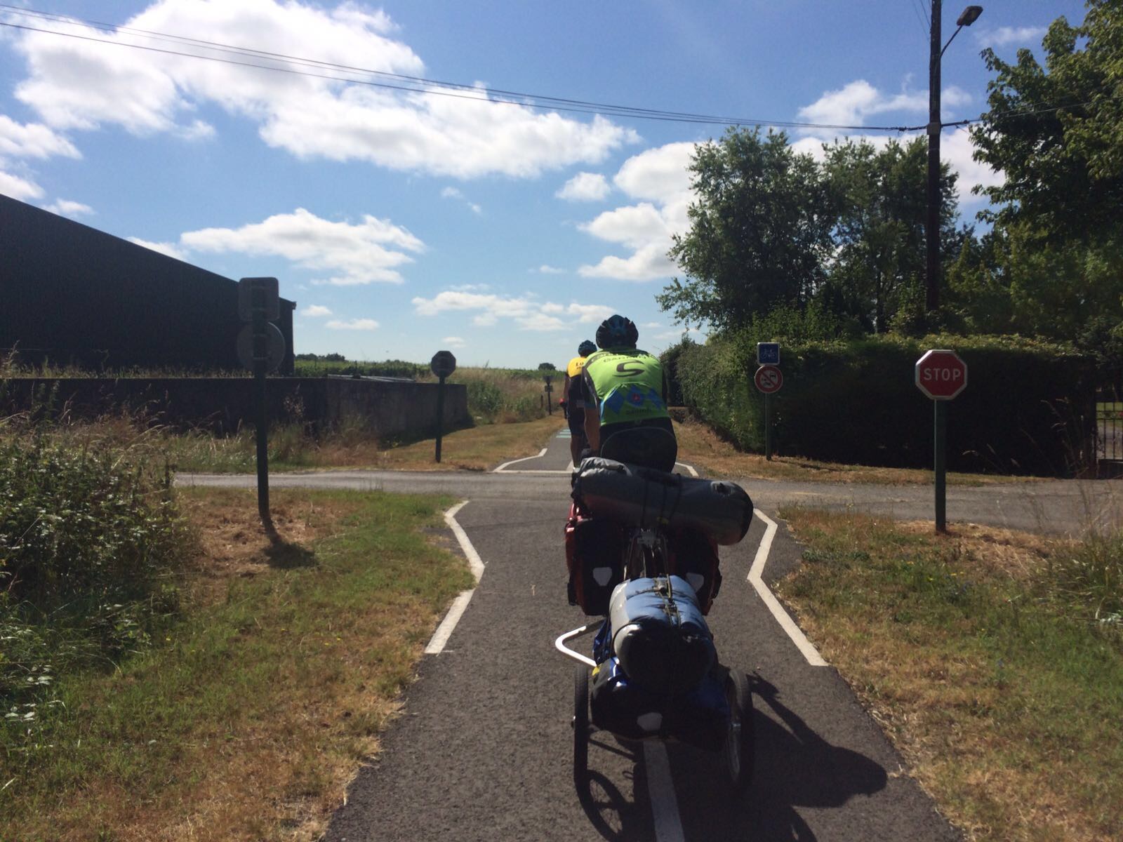 By midday they had already covered 35 miles & had done 50 by the time they stopped for lunch. The quality of the track makes such a massive difference and they regret having battled their way along the poor route alongside the Nantes-Brest Canal at the start of the trip, when 50 miles in a day was good!