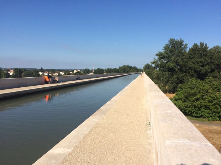 By 10 am they’d already completed 30 miles & had passed by the town of Agen, famous for its wonderful prunes. Here they also went across Le Pont Canal – a pretty aqueduct over 500m long, built to carry the Canal de Garonne over the river of the same name.
