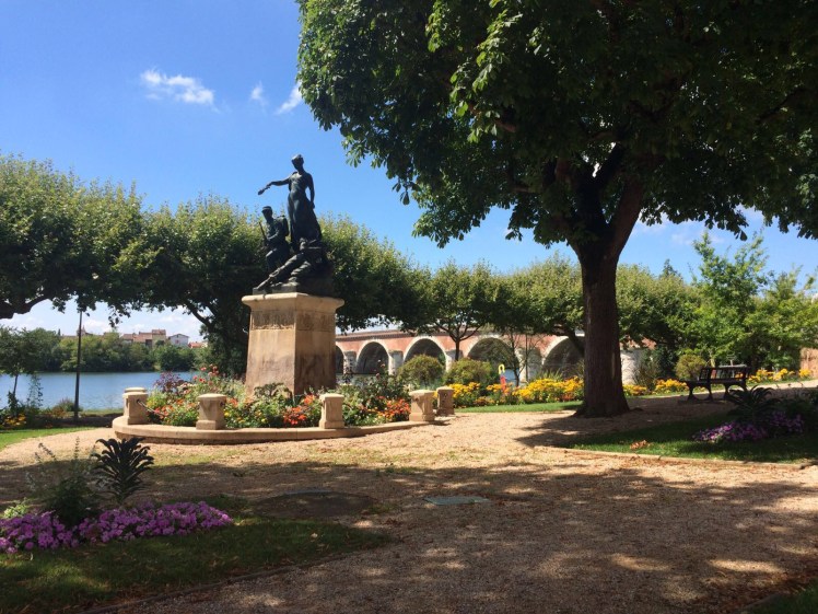 There was certainly no time though to stop & take in the views & they carried on, reaching the town of Moissac by lunchtime, taking a break for some much needed food by the River Tarn that runs through the town.
