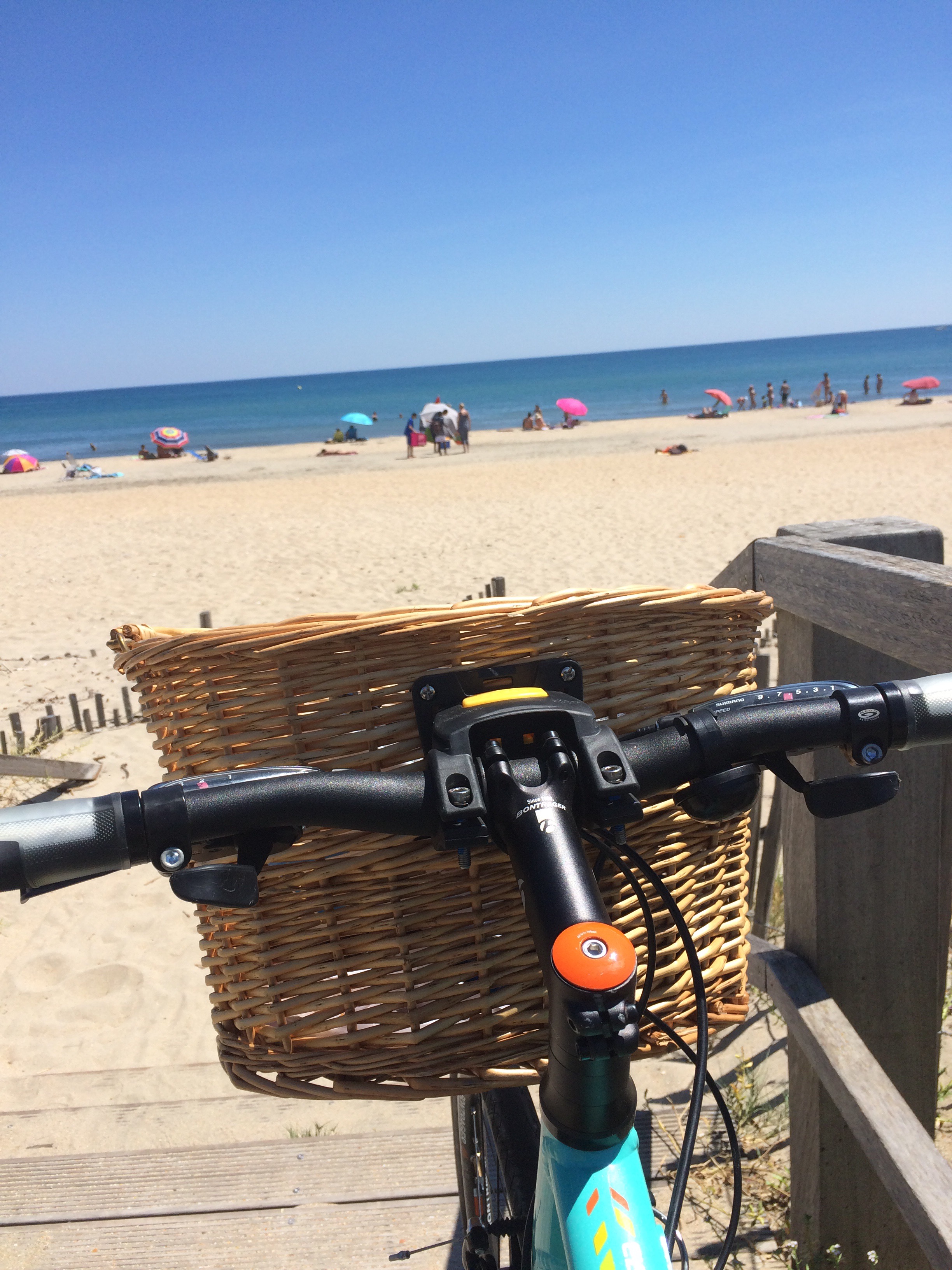 The last few kilometres went along  a lovely multi-use trail that runs directly behind the massive sandy beach that runs from Marseillan Plage right into Sete. The day couldn’t have been more perfect, not a cloud in the sky & the Mediterranean  a spectacular blue shimmer.