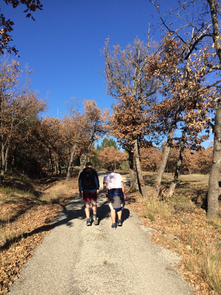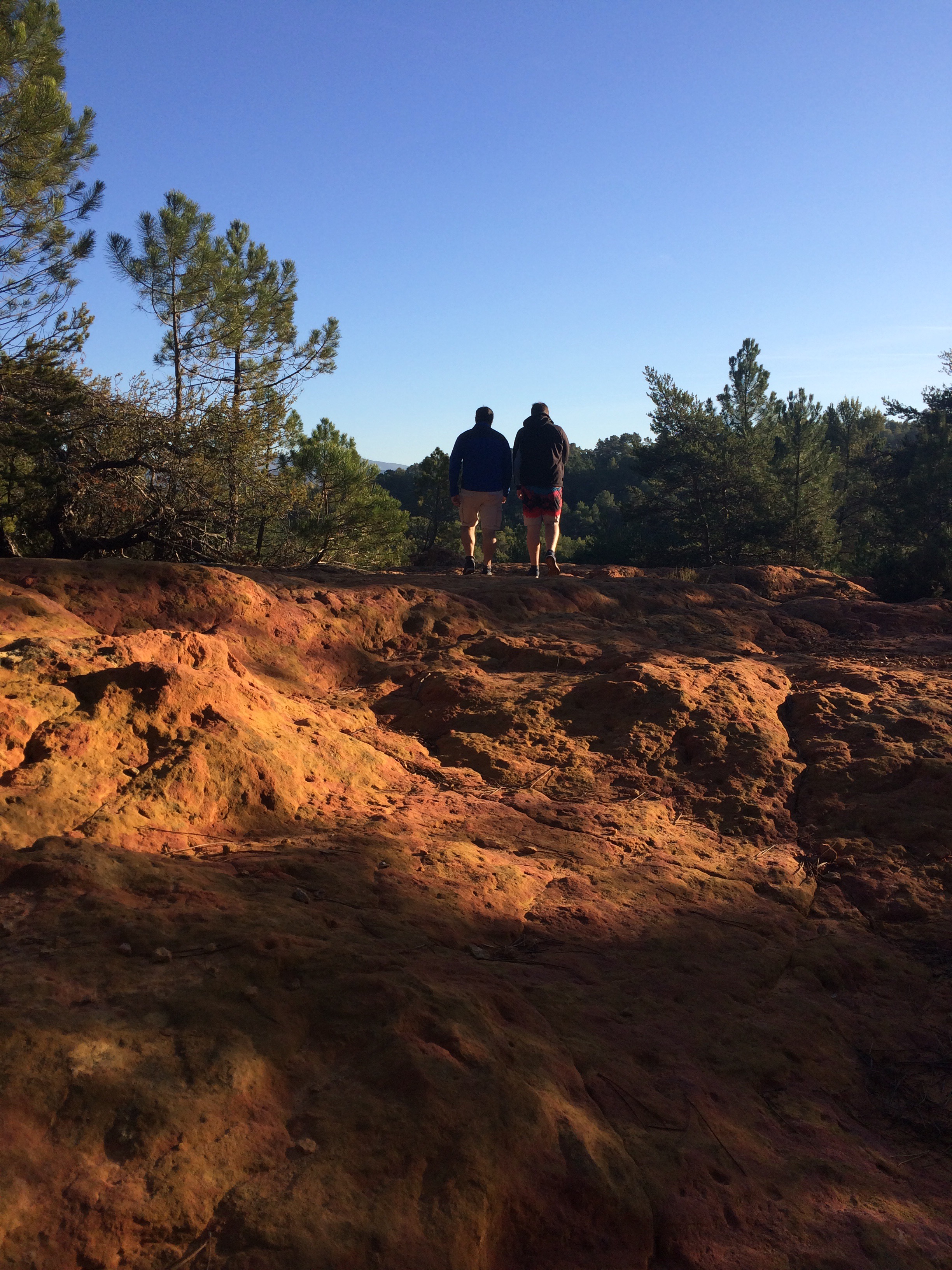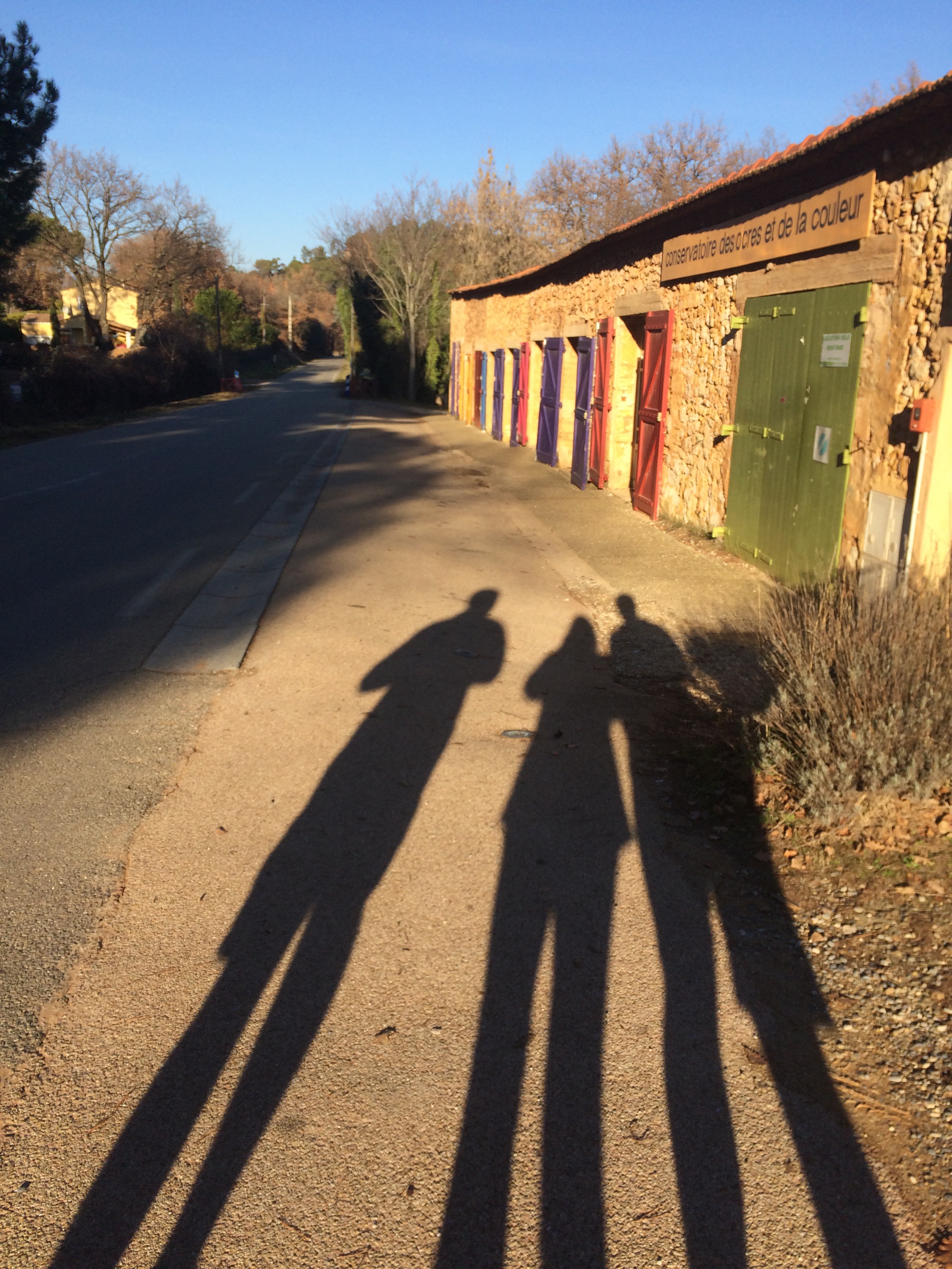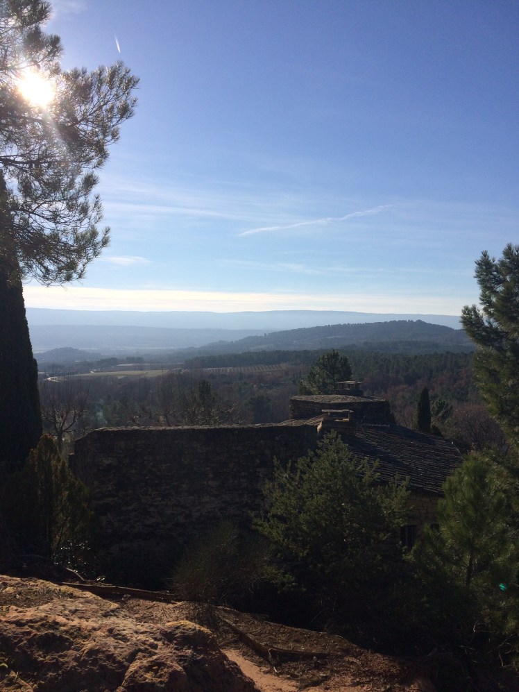 The day we did this walk this winter (a couple of days after Christmas) the weather was beautiful – the sky was a clear blue and to be honest it was warm, so much so that Andy & my youngest wore shorts & T-shirts (although this did raise some eyebrows when we got to Roussillon, where most people seemed to be dressed in ski-coats, gloves and hats!)
