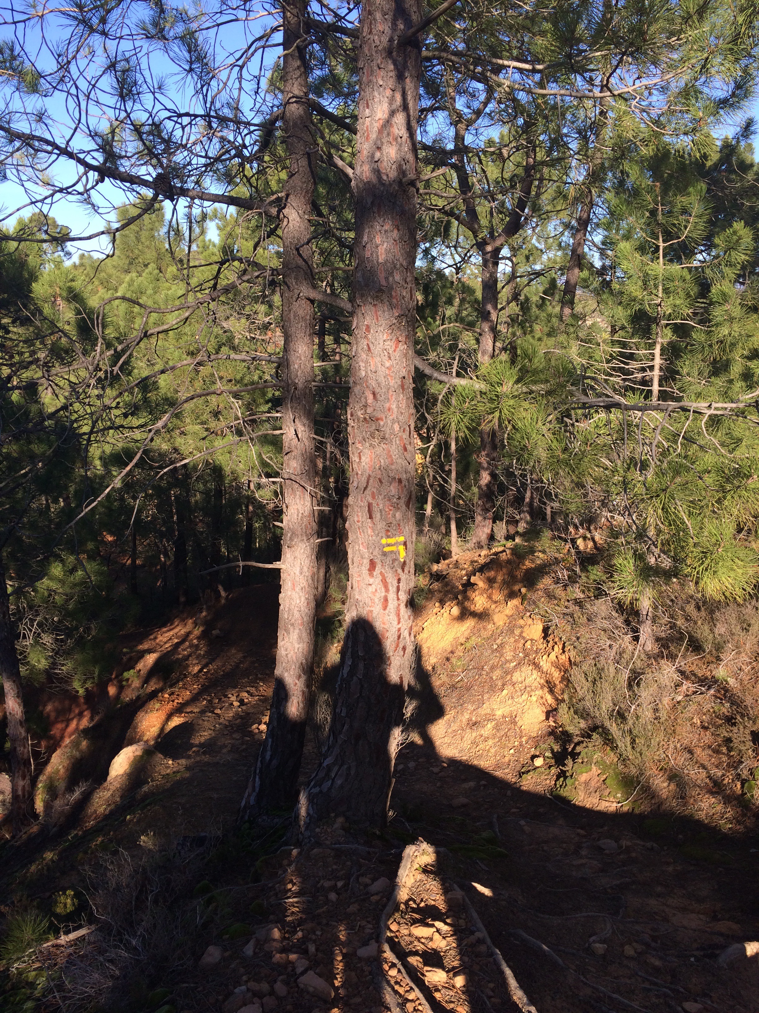 After the rocky outcrop the path changes and you find yourself walking along an earthy trail where the soil becomes a beautiful dark red as it takes you further up the hill towards the village. Eventually you’ll see a mark on a tree showing the trail turning left.