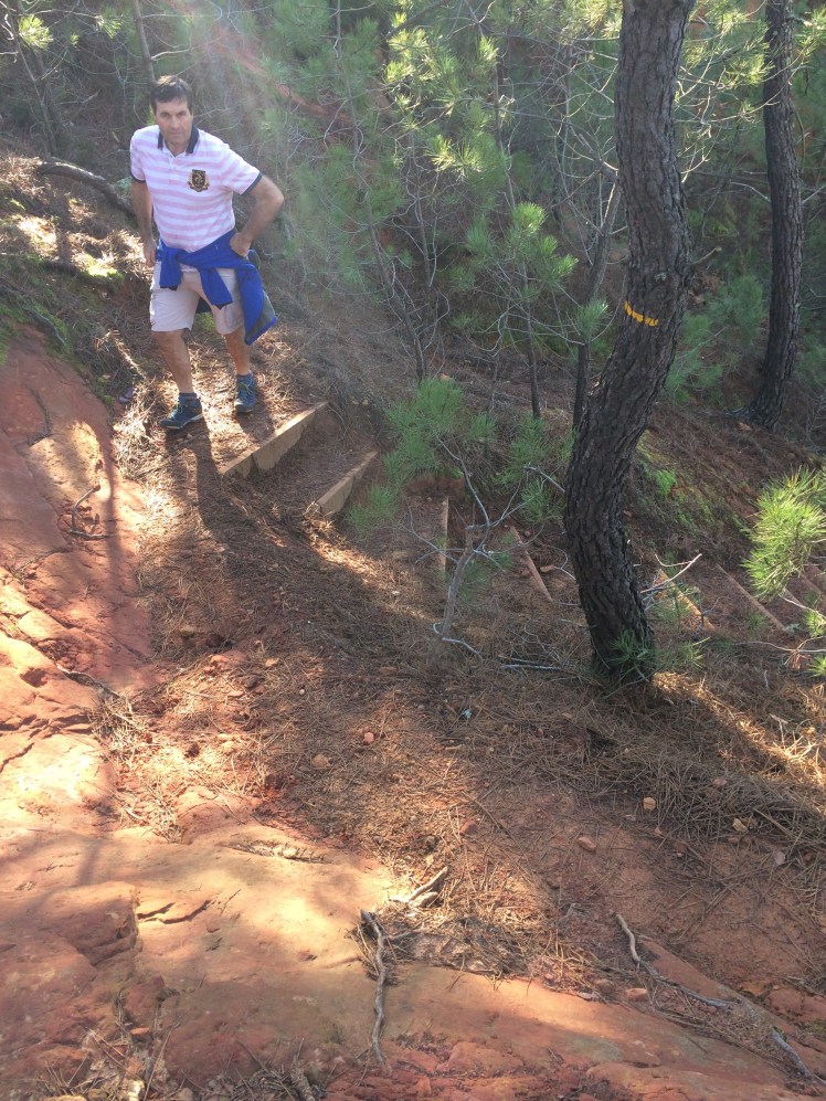 Once on this trail you climb gently through scrub-oaks and pines along an easy trail that is edged with the wonderful yellow, orange and red ochre-laden soils that come to mind when you think of Roussillon.