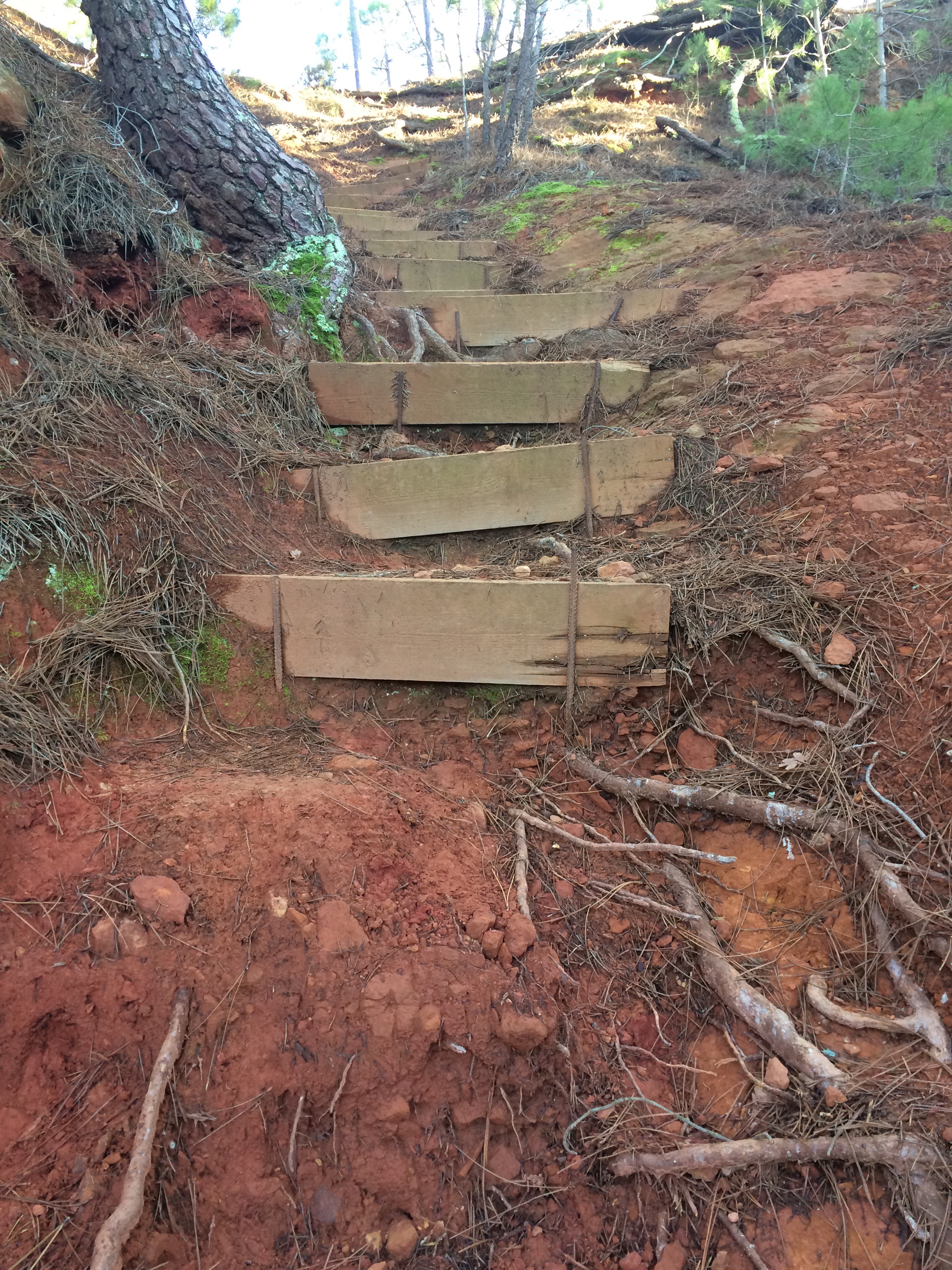 Here the trail drops quite steeply down some uneven steps, some of which have long-since disappeared…..