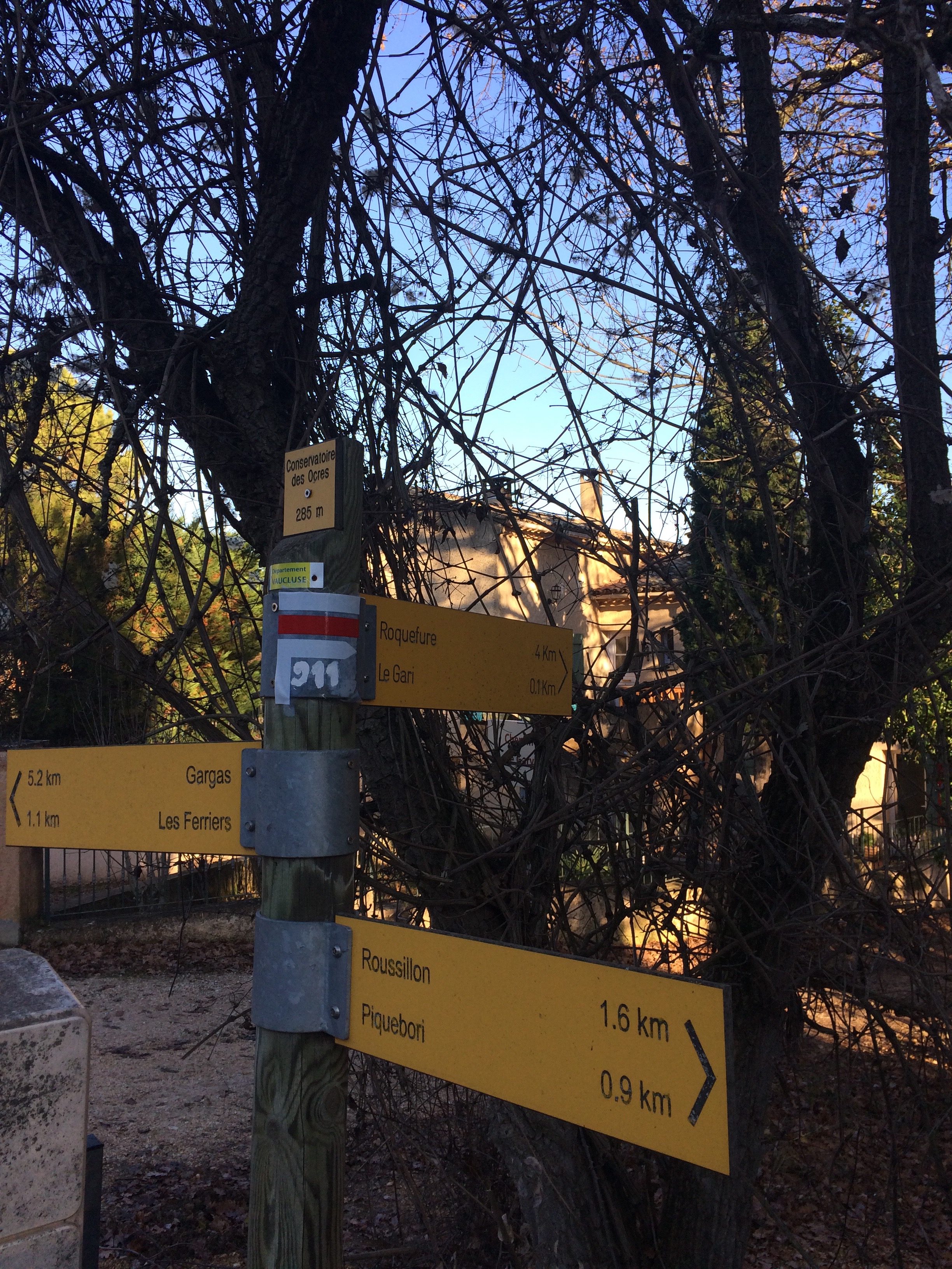 The walk (with stops) takes us about 3 hours and we potter along chatting, stopping when we fancy and just taking our time to admire the view. Doing the walk this way around means that the hill is out of the way at the start and there is the chance for a coffee in Roussillon, although of course you can easily start and end the walk there too, where there is plenty of parking.