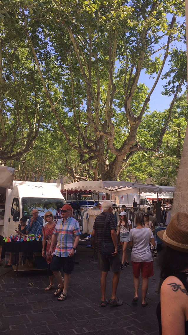 I managed to find a spot for lunch under the vaulted arches on the main Place aux Herbes in the centre of the old town. Beautifully shaded it was the perfect place to sit for an hour and watch the market in full swing…….