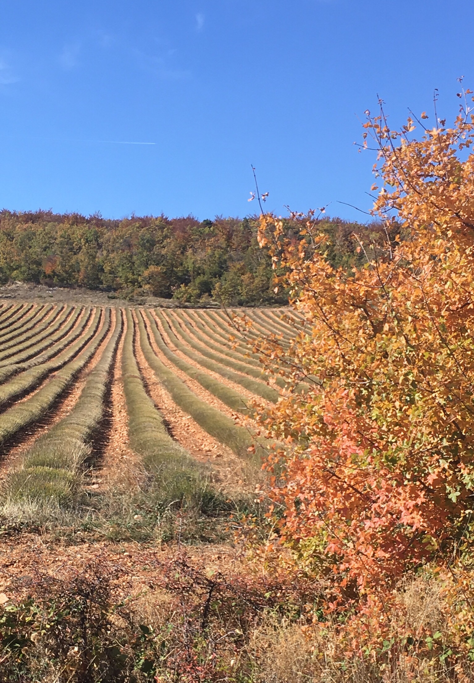 The colours were also spectacular with the trees seeming to stand on an orange and gold carpet, having shed a lot of their leaves in the recent Mistral.