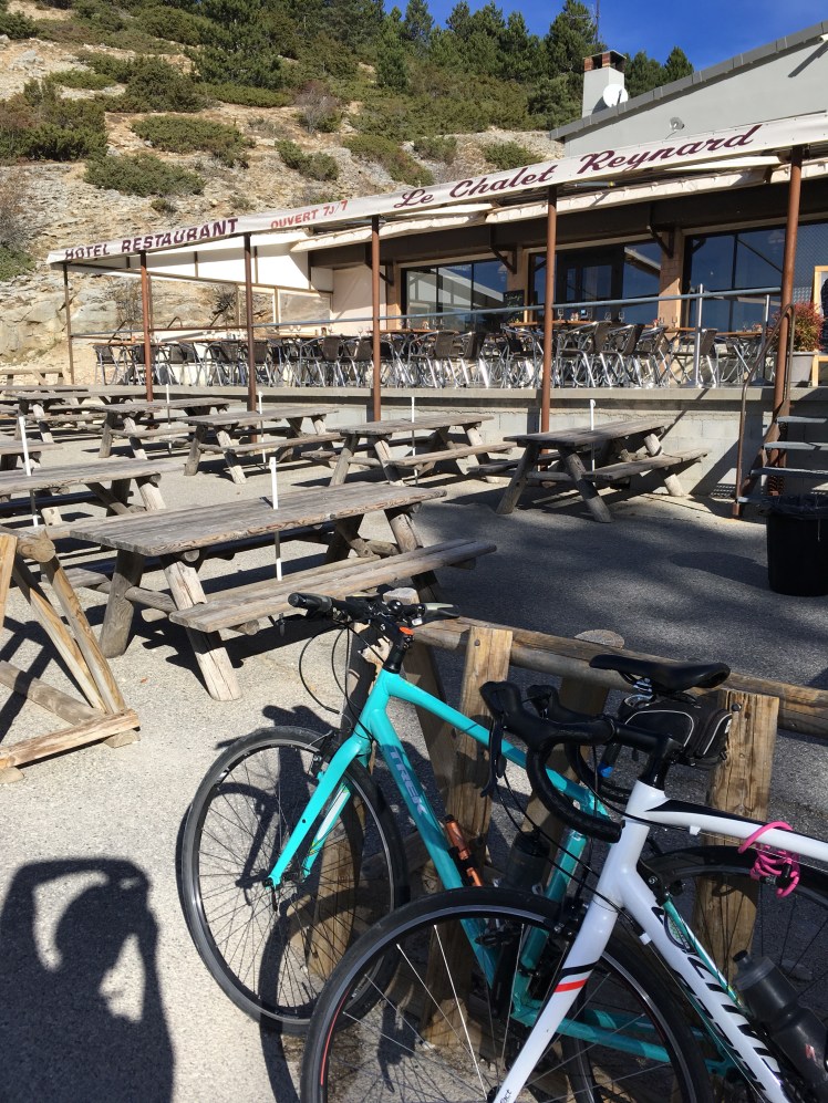 With so many things to distract you, it does tend to take your mind off the climb itself and we quickly reached the viewpoint, stopping for a few minutes of absolute peace to enjoy the magnificent views back across to Sault and beyond into the ‘Alpes de Haute Provence’, before heading on & covering the last few kilometres to Chalet Reynard for a well-deserved coffee stop.