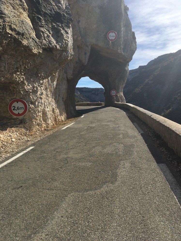Before it reaches the viewpoint at the entrance to the Gorges, which sits above the road and gives you the chance to look back along the sinuous route that disappears into the distance.
