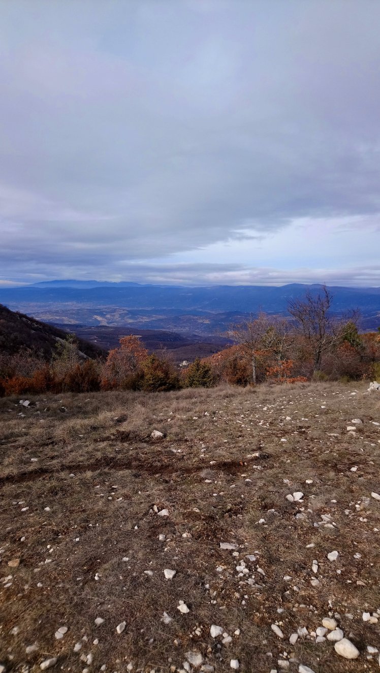 After following the track at a gentle pace for about an hour we reached the top of the Luberon & had our first sight of the sun glinting on the sea at Marseille.