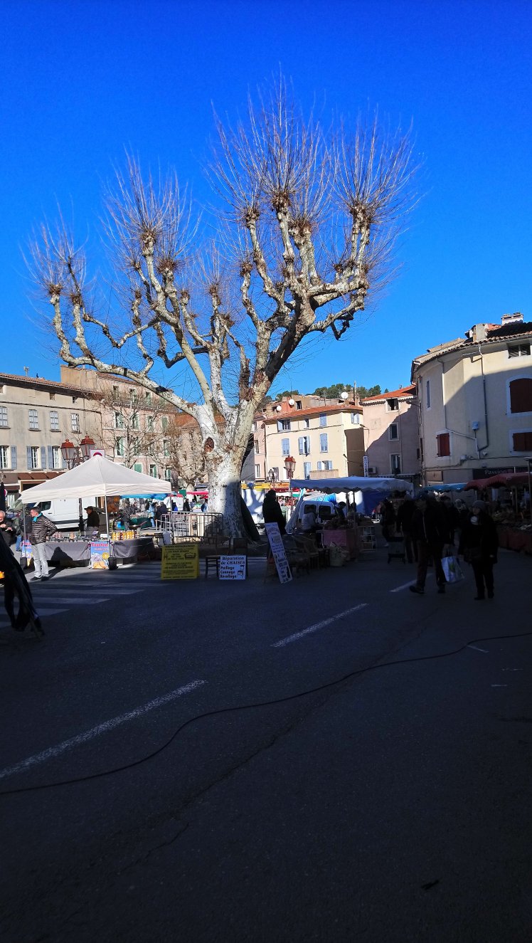 One of our favourites of course is Lourmarin, where she happily settled under the table in front of Café Gaby, watching the antics of other dogs that passed. Here meeting Max, a friend’s dog…