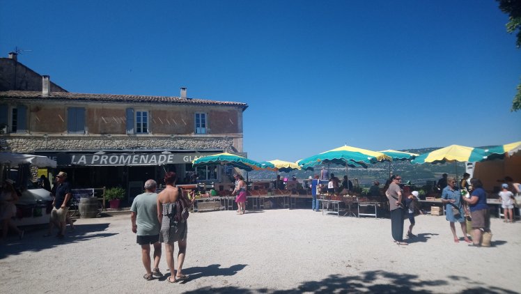 Marvel at the landscape laid out before you with the Luberon looking like a fold of material and the Mediterranean glinting in the distance…..