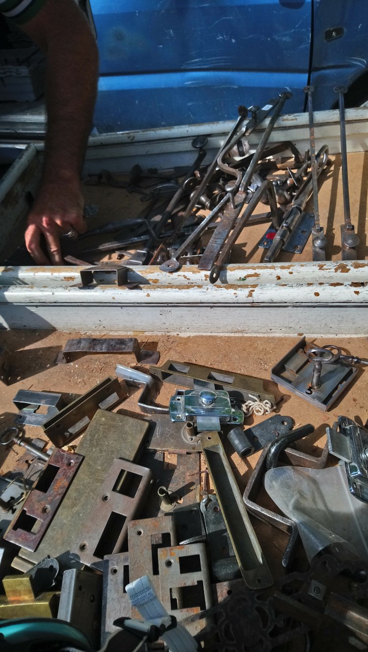 It wasn’t long before the first items were popped into the panniers. Nothing light of course, but a bag full of heavy old iron latches and locks to be used on doors in our forthcoming renovation works – as I mentioned in the last blog we like anything that will add instant character to the house and old ironmongery will only help.