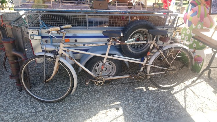 I think the biggest purchase on one of our Brocante rides, was 2 years ago at the Assumption Day Vide Grenier at nearby Les Beaumettes, when Andy was turning heads on the way home towing a large (adult-size) tin bath on the trailer behind his bike. It certainly wasn’t the normal sight along the Veloroute du Calavon and through Apt!