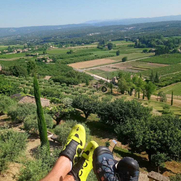 That day the ride took us out to Menerbes, where we sat on the wall below the church, drinking coffee and munching on croissants from the village boulangerie – a breakfast with a view is always the perfect way to start the day!