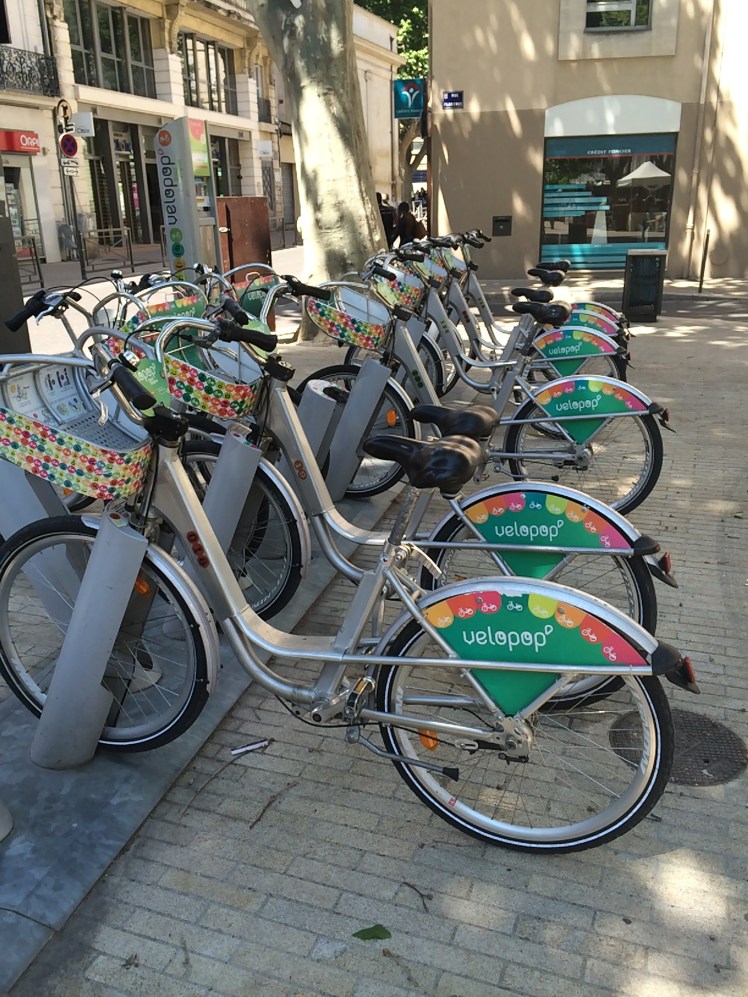 He wandered out to find where the buses go from and found a totally deserted bus station, looking abandoned and windblown under the unseasonal grey skies and almost began to lose hope….. in fact it was at this point that he started to look at whether it would be possible to use one of the Avignon Velopop bikes to ride to the house …. he was clearly starting to get desperate (although deep down part of me would have loved to have seen this)
