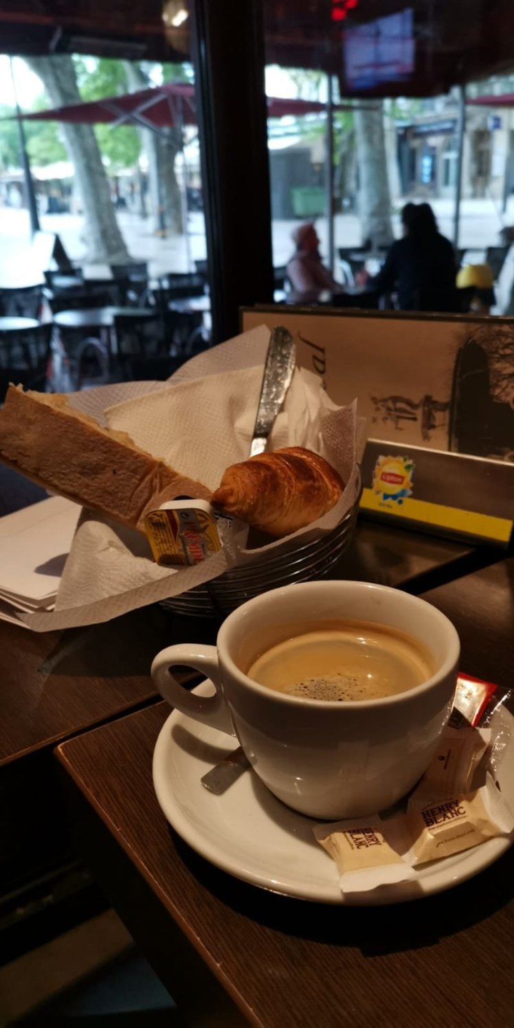 At this point what else was there to do, but drink coffee and reflect on how much his french has improved, enabling him to sort everything out with the minimum of stress. He just had to wait, hoping the bus (shown to be running at 3) was actually there, otherwise he would have to stay in a budget hotel in Avignon overnight, with the frustration of being so close to home, but still so far away.