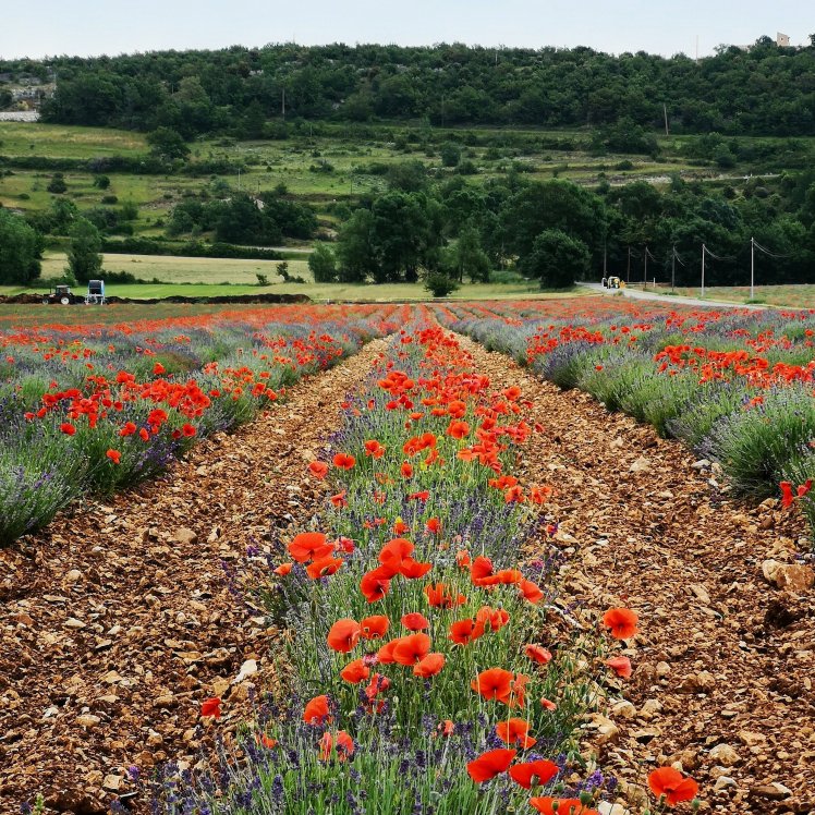 We started at Simiane La Rotonde, happily munching breakfast and drinking coffee, overlooking the poppy-strewn lavender fields opposite the boulangerie.