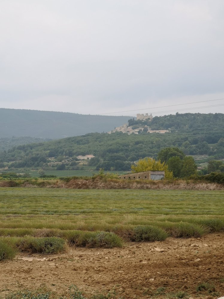 The lavender fields that spent the summer in a purple haze had been cropped and returned to sage green corduroy stripes that now define the landscape…..