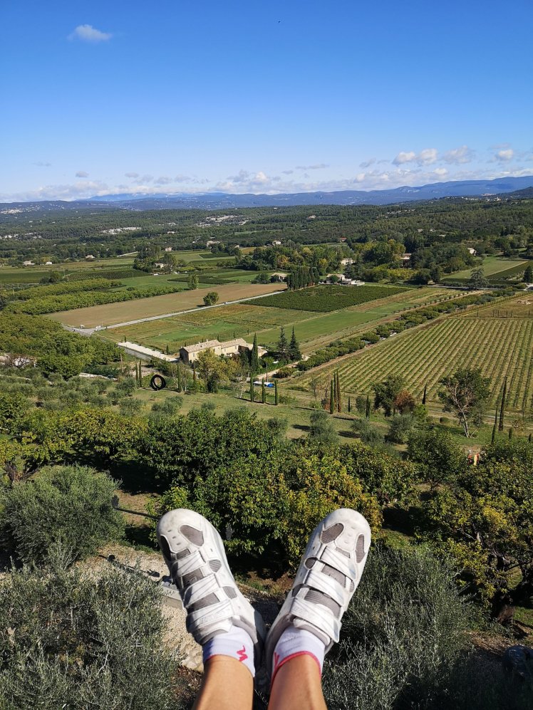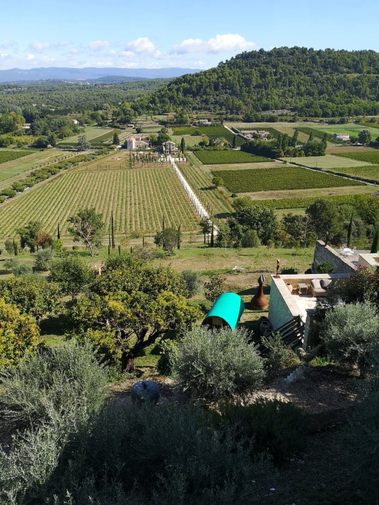 coupled with stunning views back across the vineyards and fields towards Apt in the distance….