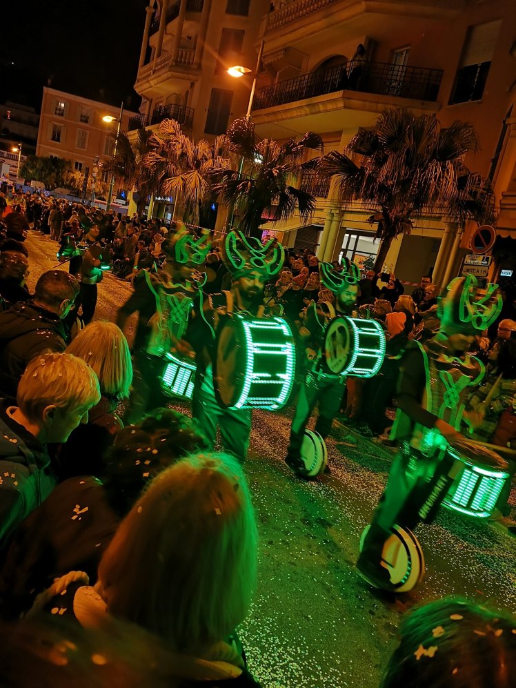 Even the drum band gliding past on their single wheel ‘Segways’ glowed with eerie green light.