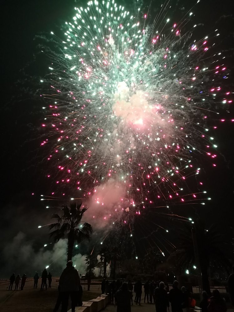 Then all the streetlights along the front were turned off, plunging the beach into darkness so that the fireworks could be seen at their best, with the explosions reverberating off the mountains behind the town adding to the effect. Not even Andy could have slept through this!