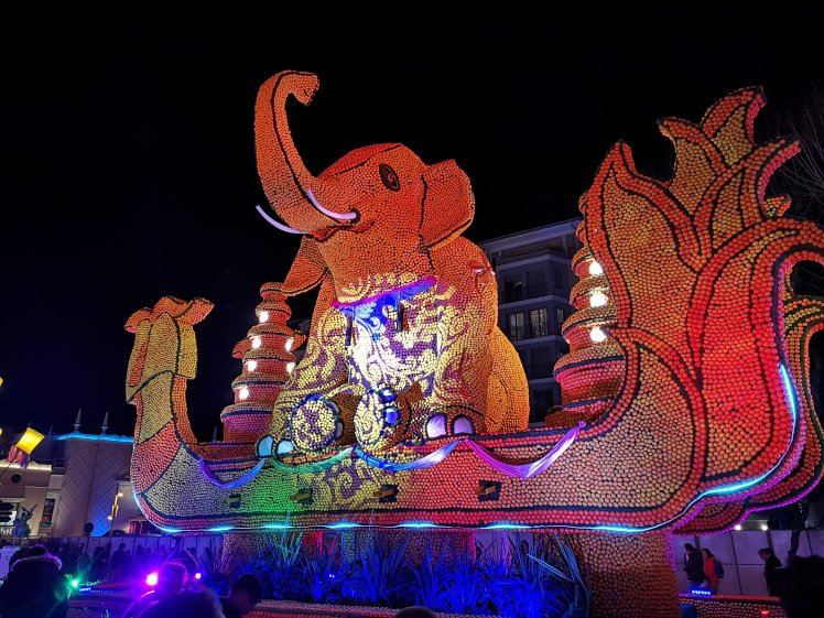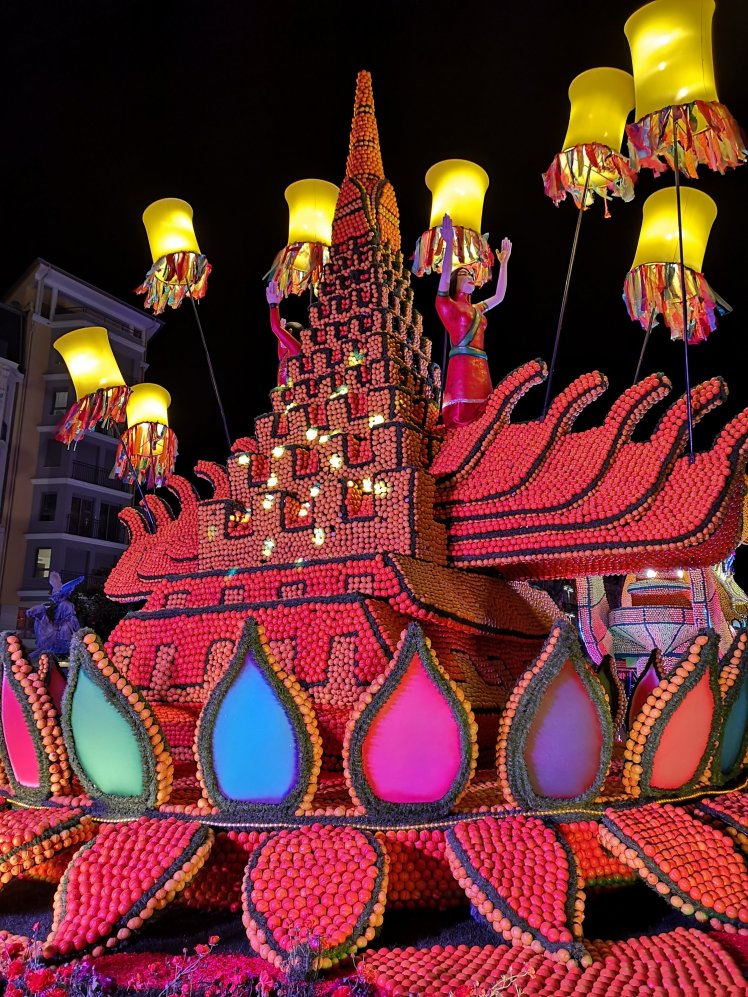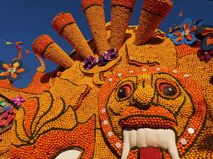 If you haven’t read one of my previous posts about the Festival, it’s a vibrant event that celebrates the local citrus fruits and has been taking place in the town for over 80 years, in fact this year saw the 87th event, designed around the theme of ‘Les Fêtes du Monde’