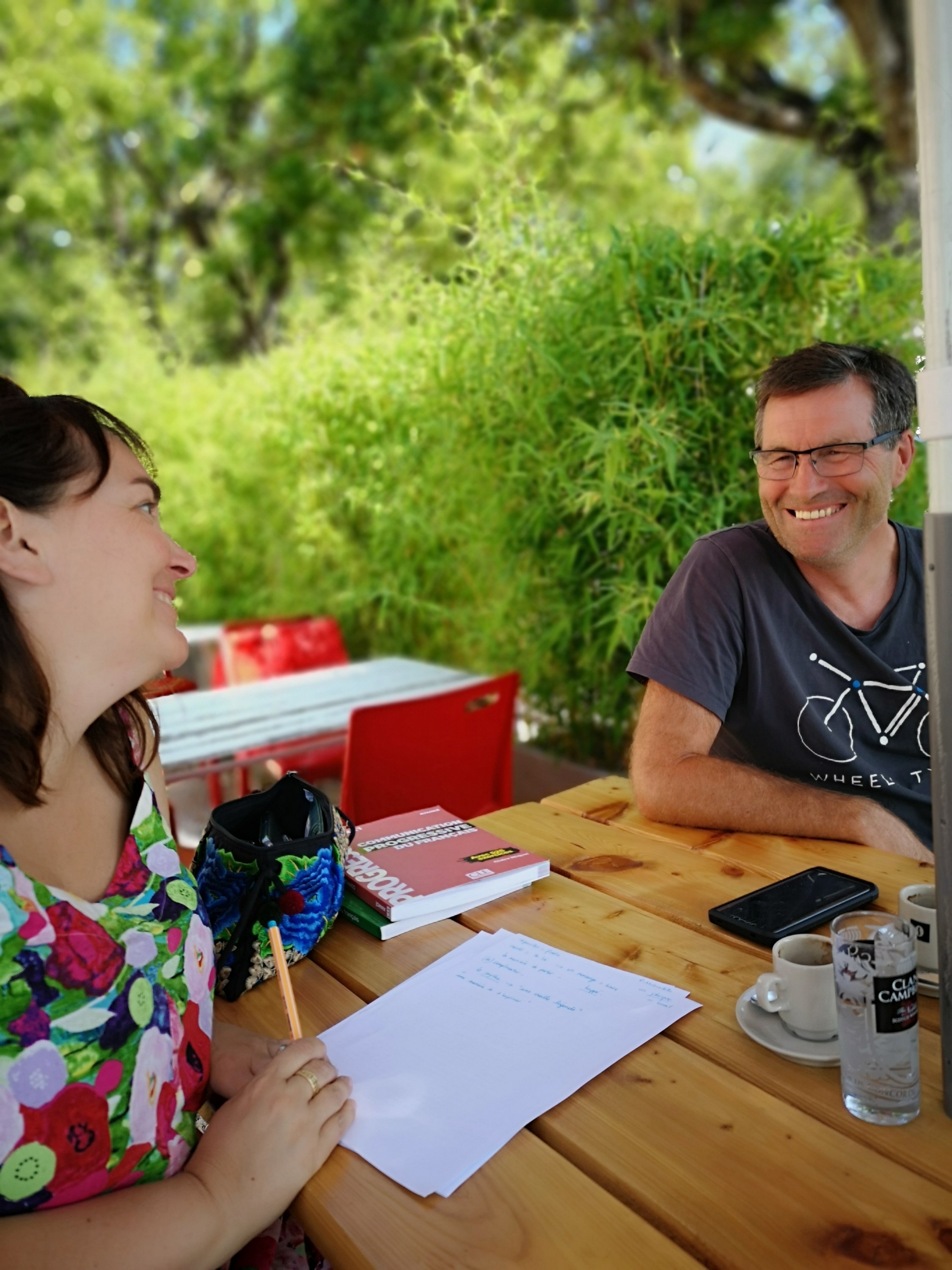 I like to think that Marina enjoys the lessons as much as he does. Her knowledge of cycling, rugby, house renovation and brocante markets has grown considerably since she started teaching Andy, as she has geared the lessons around what he wanted to focus on, what his needs were at different times to help him develop and build his self-confidence when speaking.