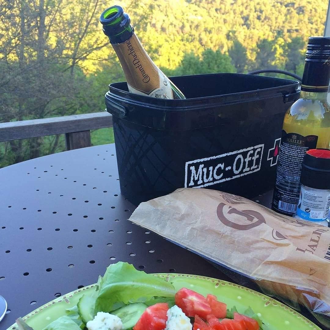 before enjoying a glass of bubbly from a bottle chilled in a makeshift ‘Muc-Off’ Champagne Bucket, but that said we can and will still celebrate from afar.