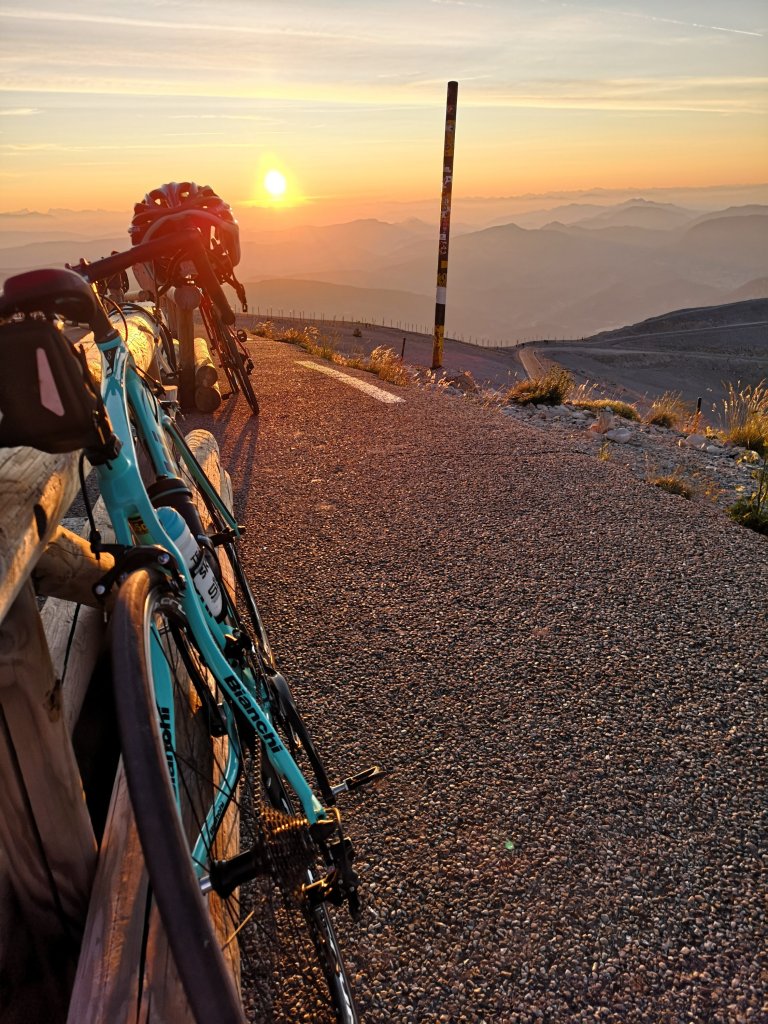 It was this view that last year tempted us to get up at silly-o’clock in the morning and ride to the summit from Sault by the light of the full moon just to watch the sunrise. The whole experience from the sheer joy of being alone on the mountain as we rode, to the absolute peace and incredible beauty of watching the start of that new day will stay with me forever and I know the experience would have been very different if we had chosen a different way to arrive than on 2 wheels.