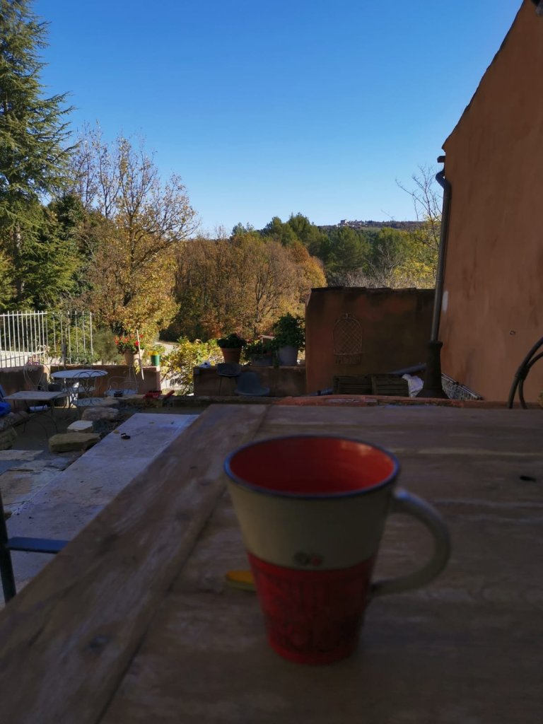 He had even managed to do it all before coffee, so we sat chatting with me in Exeter and Andy at the table, with the view that we have long dreamed of.