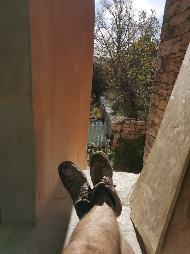 He’d now done as much as he could in the new kitchen,and in fact, the next step there will be to get Bertrand back to finish the electrics, fitting the plugs, lights and radiator. Then we will just be waiting for Pascal to finish creating the doors and porch to make it secure and fully weather-proof, before we get on with painting it and fitting new units (once we’ve finally decided what they will be).