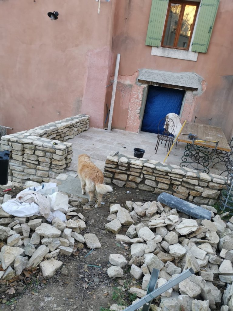 It’s always a joy to be working outside with the ever-present view of Caseneuve, and very quickly, the wall started to take shape….