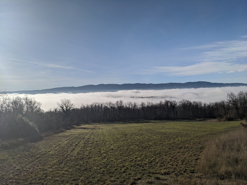 It has been such a lovely few weeks, a very quiet time just catching up and spending the days doing some of our favourite walks around the valley. One morning we awoke to the valley filled with a dense, cold fog, so trundled off to the tip, taking a detour on the way back to grab some croissants from Simiane. It is always worth the trip, but as we approached the village, we emerged from the fog into a beautiful day, with bright skies and a warm sun.