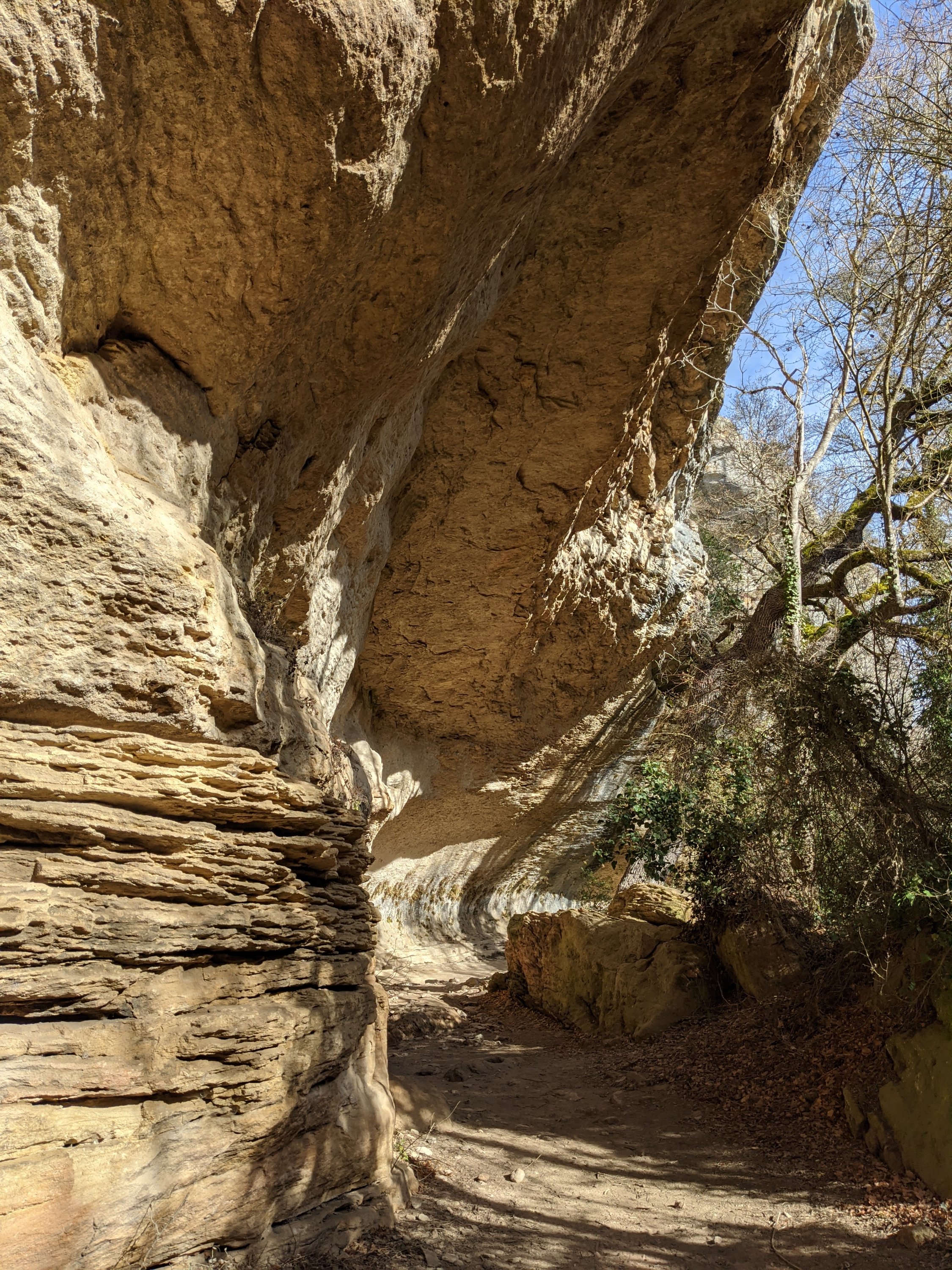 And the gorge between Simiane La Rotonde and Valsaintes, totally hidden from the road above, with a rocky path criss-crossing the clear, babbling brook, which flows at the bottom of beautiful cliffs, carved out over millions of years by this tiny stream, that is now so small that I can jump across it.