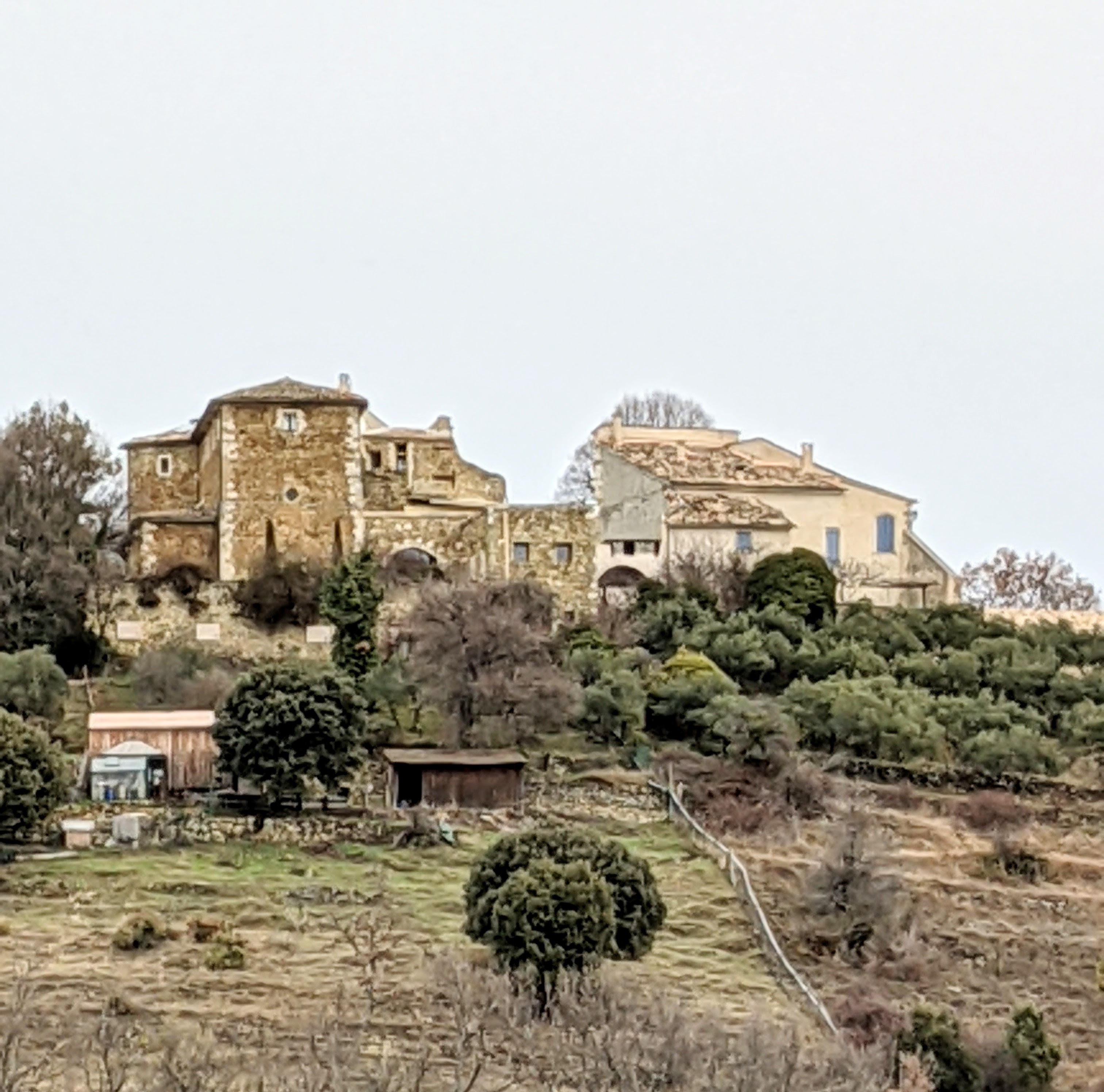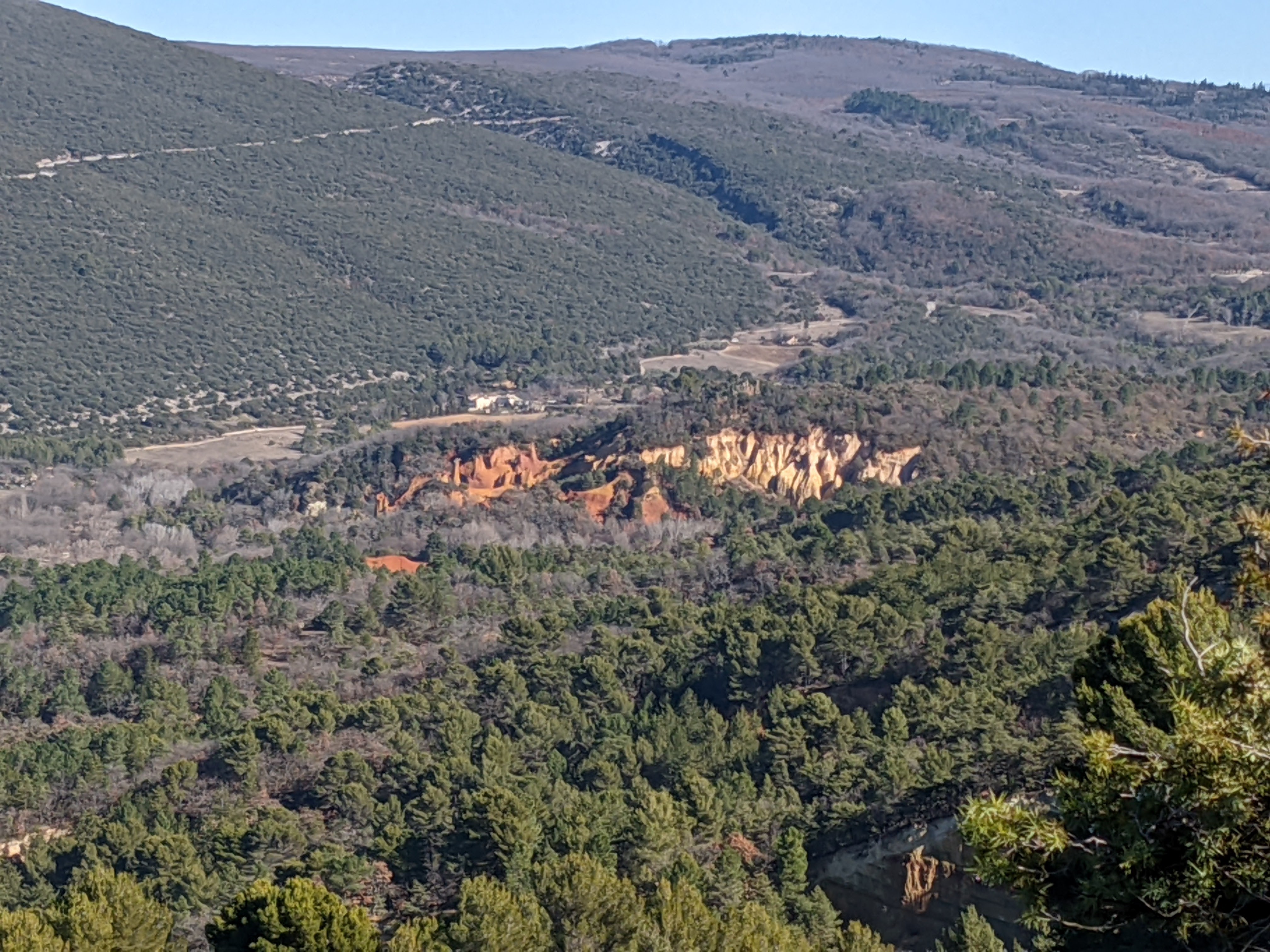 The path brings you to the front of the hamlet, where the houses, now barely recognisable under the blanket of brambles and shrubs, open out onto one of the most incredible views I have seen of the valley, with distant views towards Marseille.