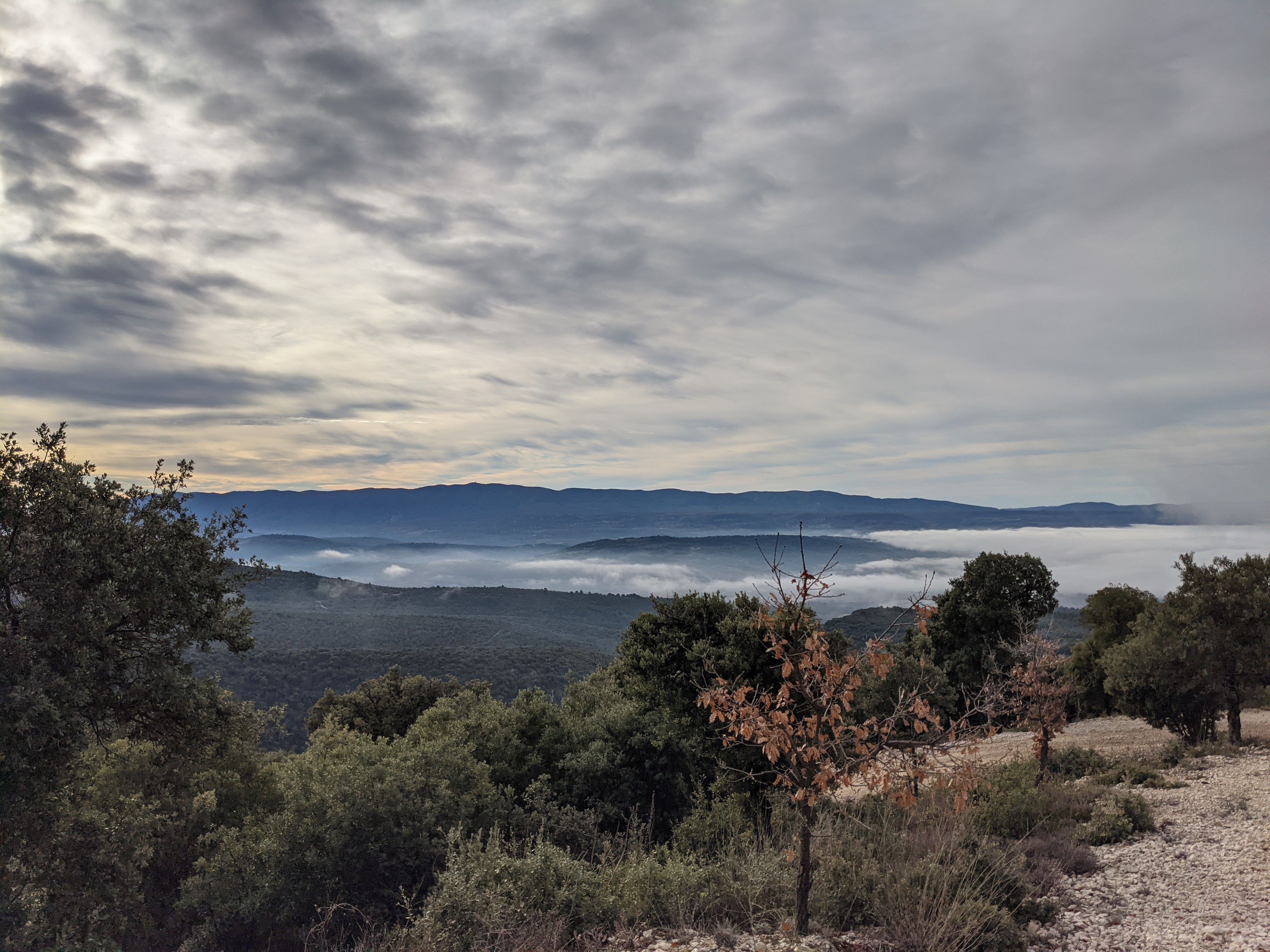 I love these views and just walking up that trail opened up some new ones to me too, looking back over to the Mourre Negre, under gold-fringed clouds, and I was happy to stop for a few moments, as this certainly wasn’t a gentle incline.